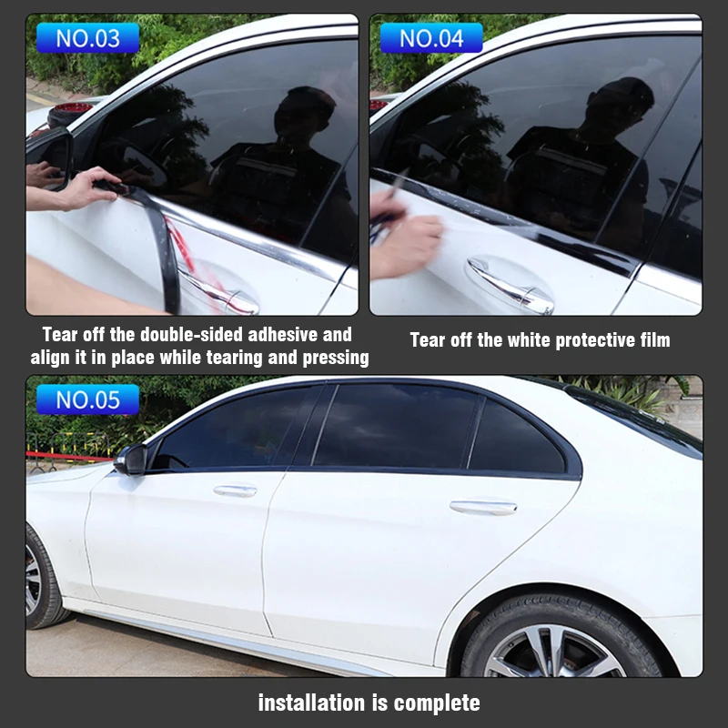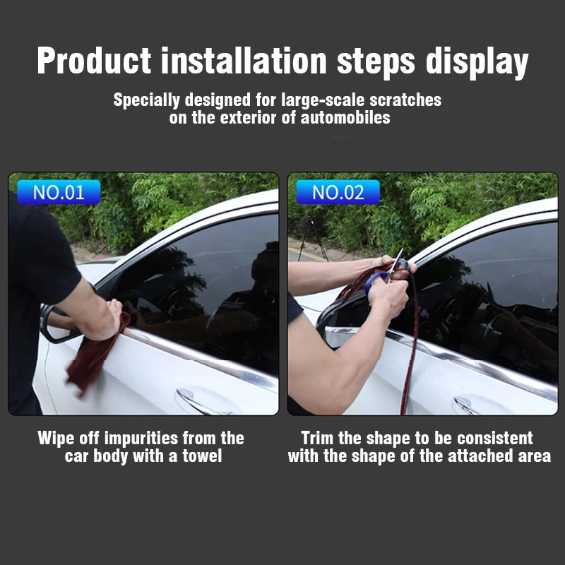 3. Si la température est inférieure à 20 degrés, il est recommandé de cuire l’adhésif avec de l’air chaud électrique avant de coller pour obtenir de bons résultats. Ne pas laver la voiture dans 1 jour après le collage.