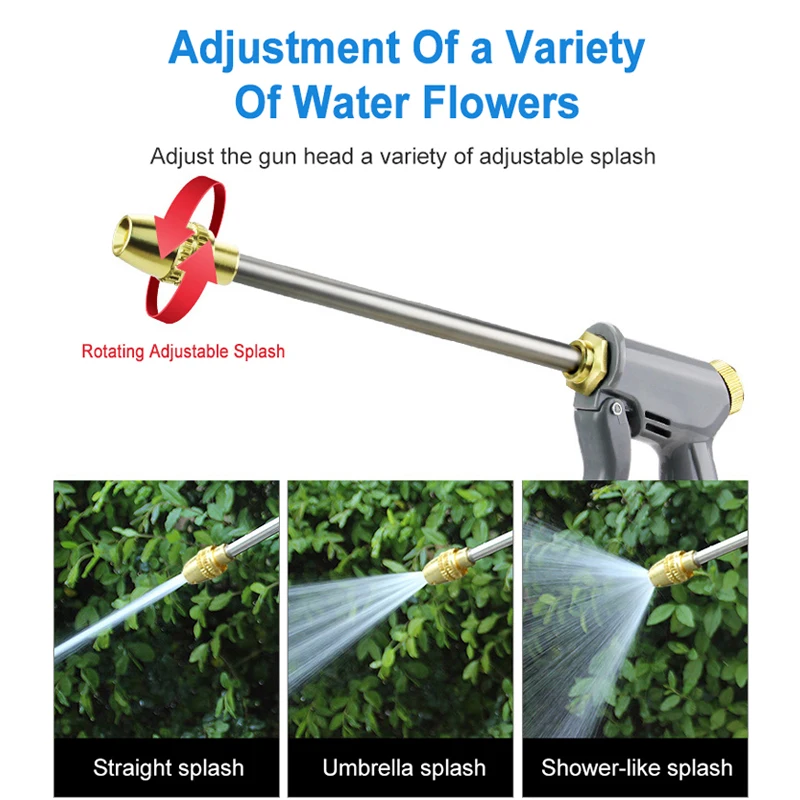 Le Pulvérisateur d’eau de jardin en métal à haute pression est un produit polyvalent qui convient pour l’arrosage des plantes, le lavage des voitures et le nettoyage de la pelouse domestique. Son tuyau est composé de trois couches en TPE, avec un joint en aluminium et un manchon tressé en polyester pour une durabilité optimale. Il peut être complètement étiré lorsque la pression de l’eau est supérieure à 3-6kg (0.3-0.6Mpa).