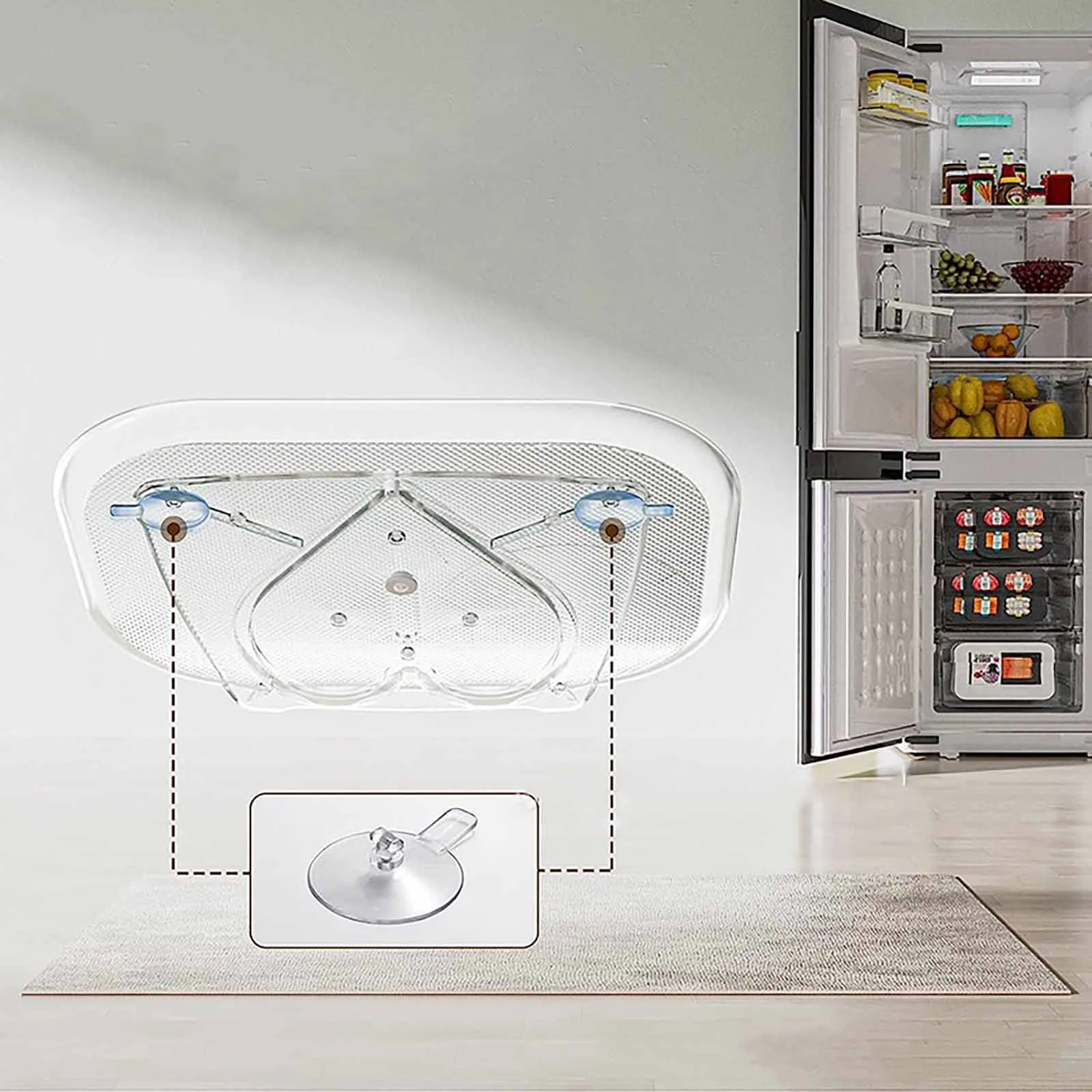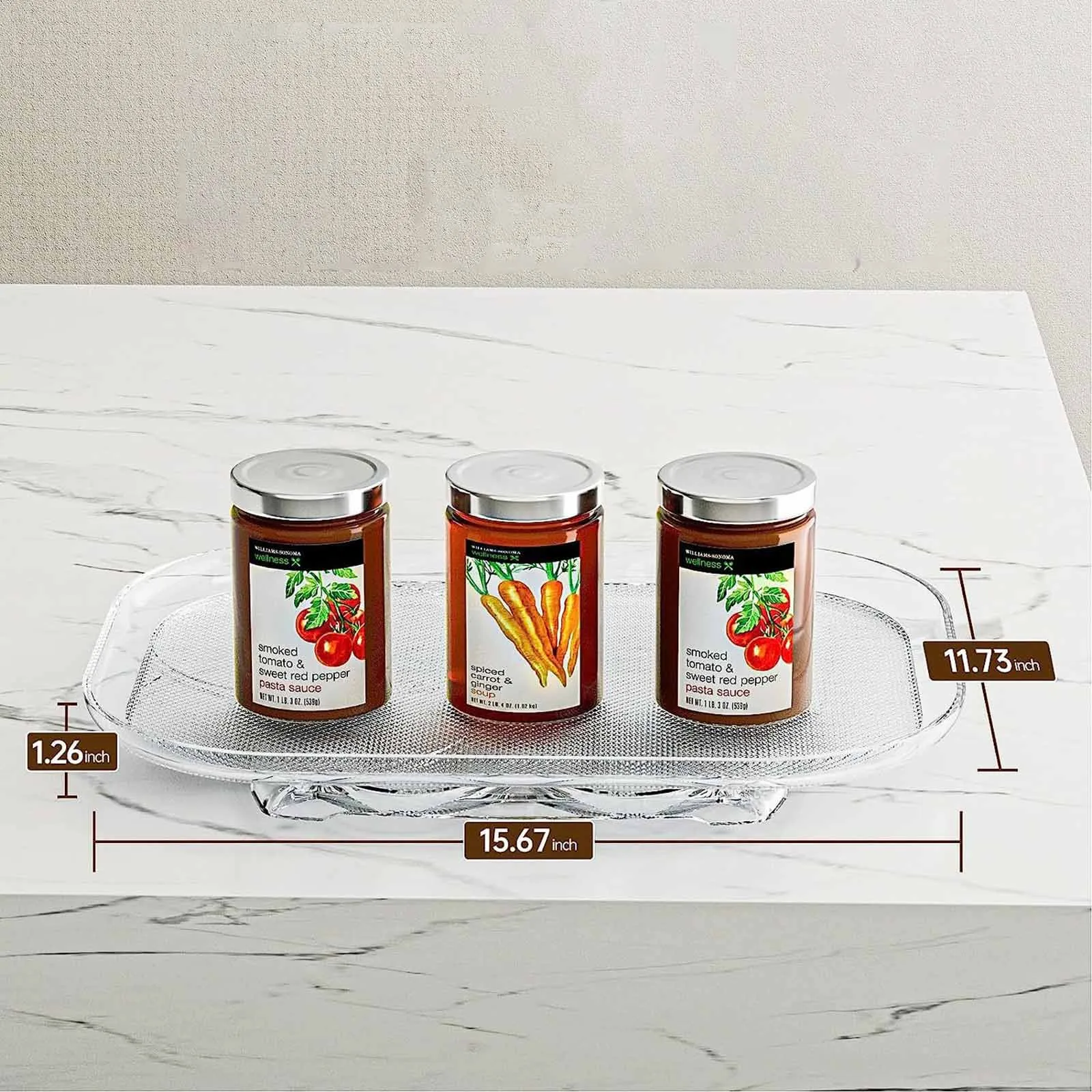 Avec des dimensions de L15.67 x W11.73 x H1.26 pouces, il convient à la plupart des réfrigérateurs et peut contenir jusqu’à 17.6 livres d’articles.