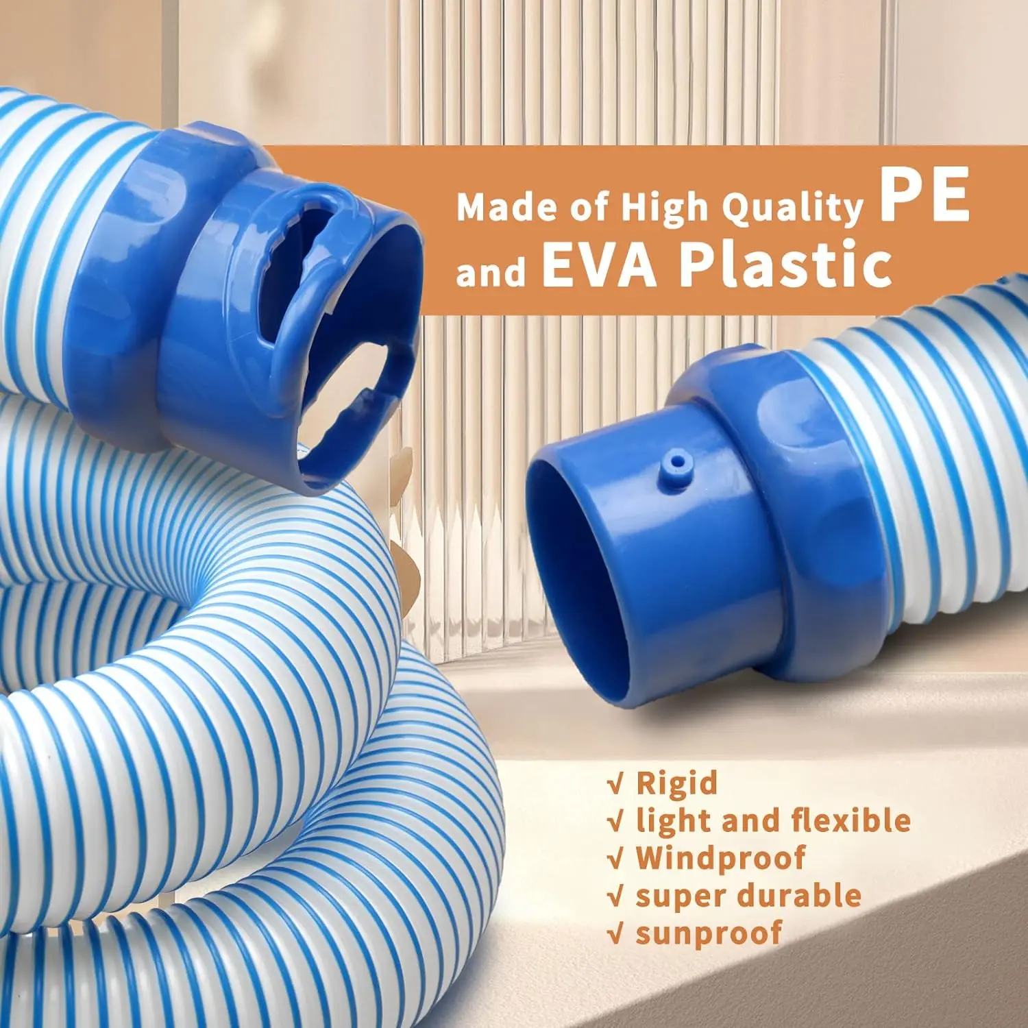 Le tuyau est fabriqué en plastique PE et EVA de haute qualité, ce qui le rend rigide, léger, flexible et résistant au vent, au soleil. Il est également super durable pour une longue durée de vie.