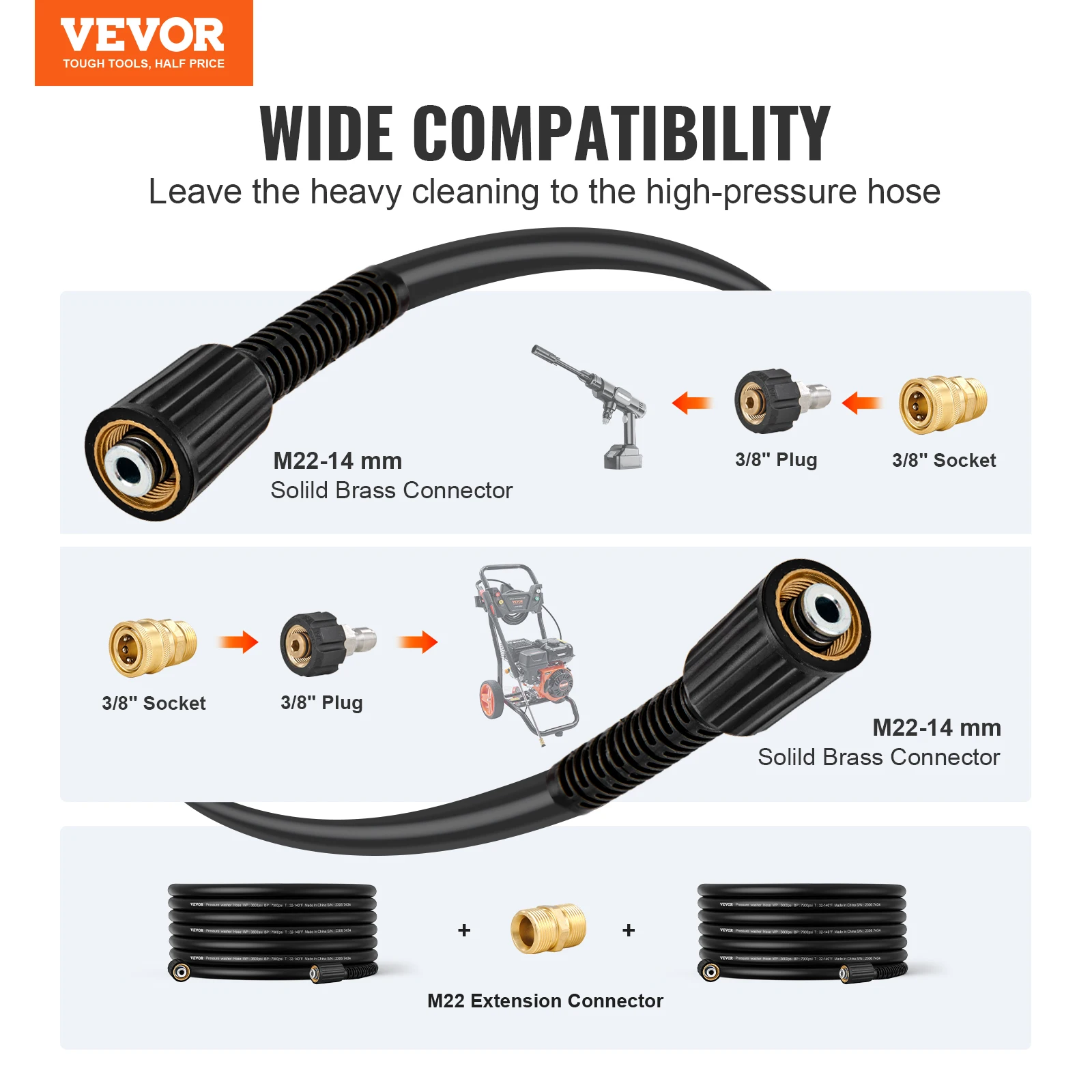 Nettoyage sans effort rendu possible grâce à notre tuyau de nettoyeur haute pression de qualité supérieure. Ce tuyau de VEVOR offre des performances exceptionnelles, une pression constante et un débit d’eau intense pour un nettoyage impeccable. Il est conçu pour s’adapter à la plupart des modèles de nettoyeurs haute pression standard grâce à