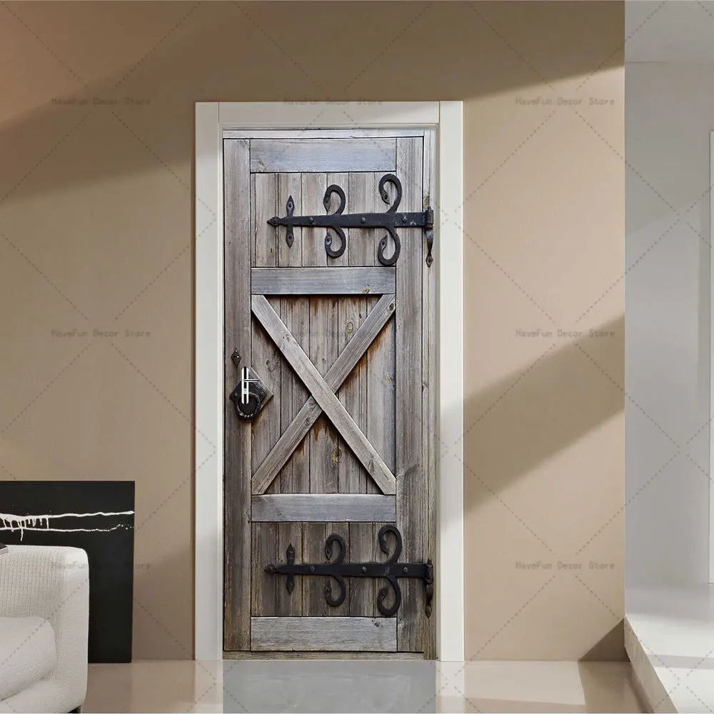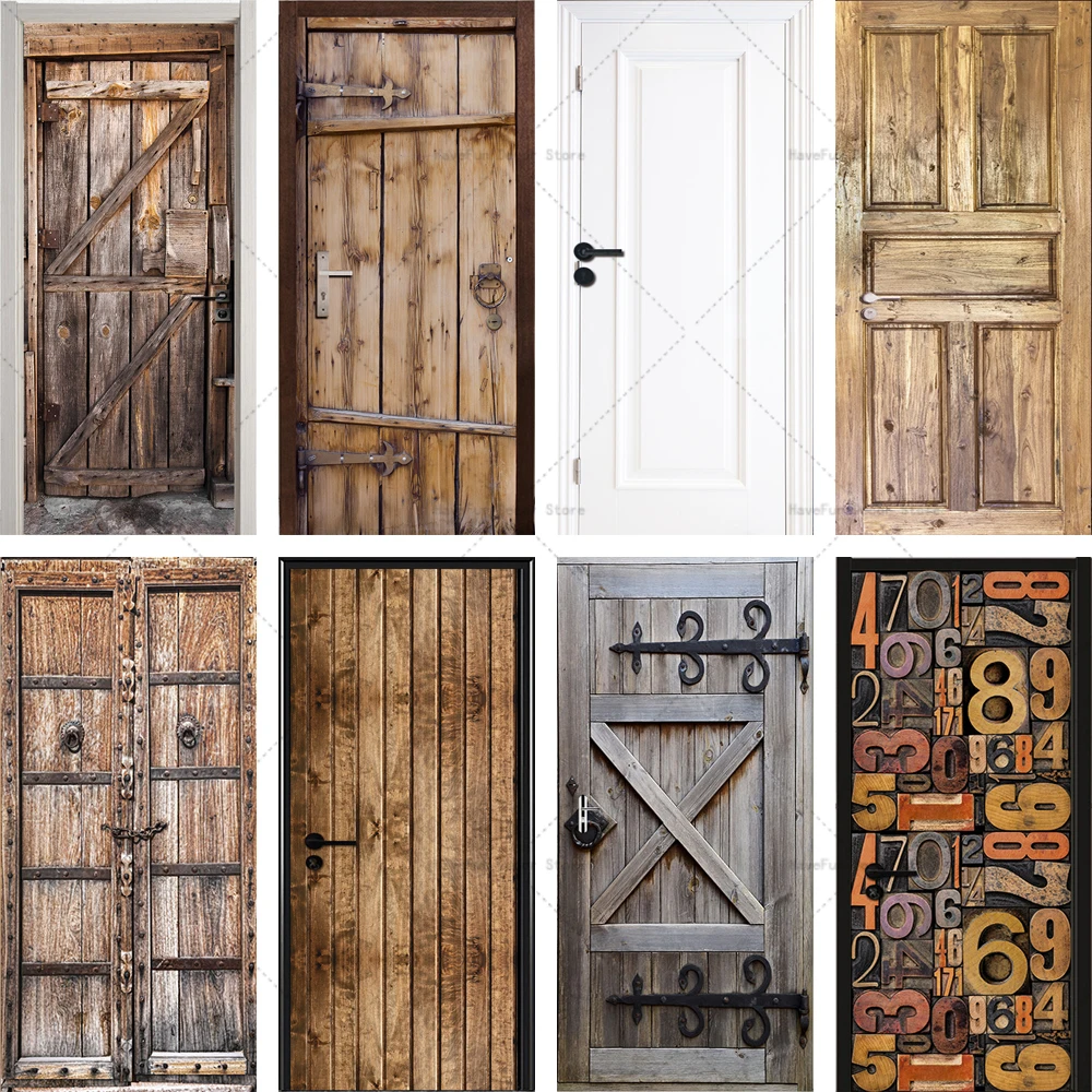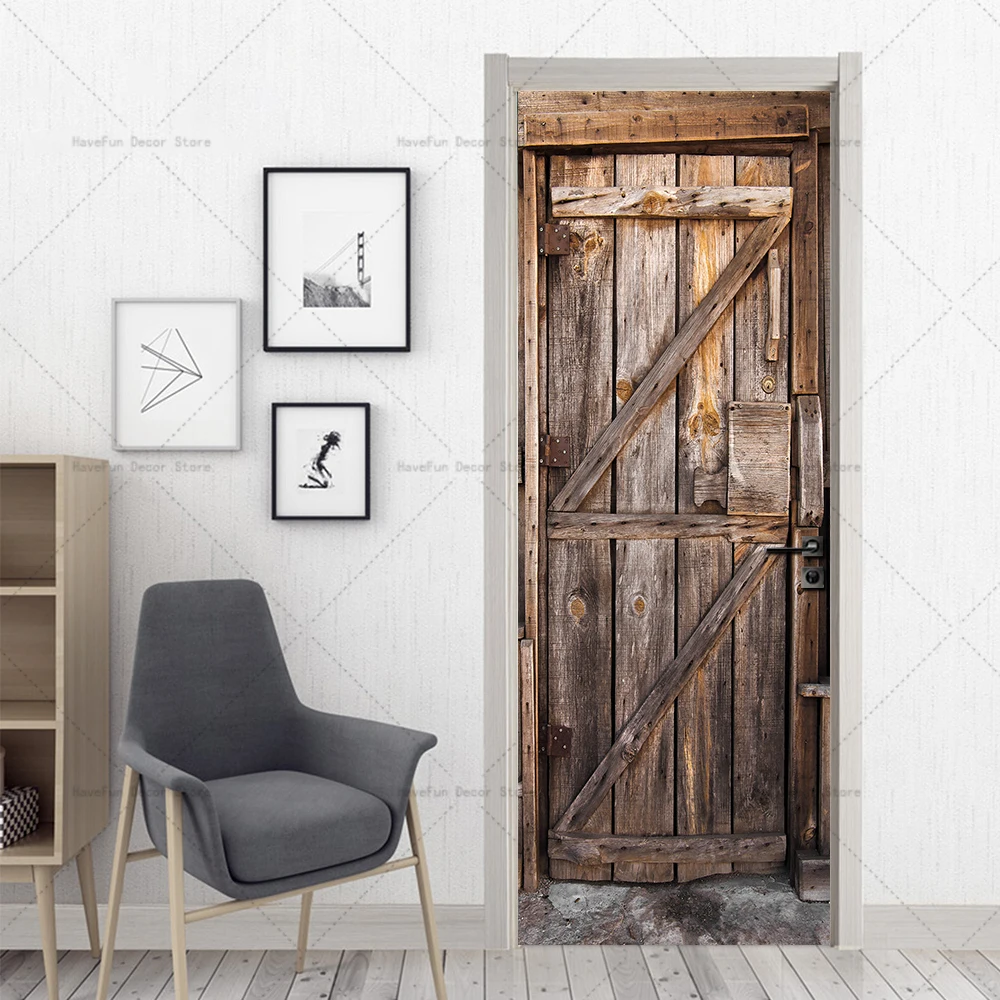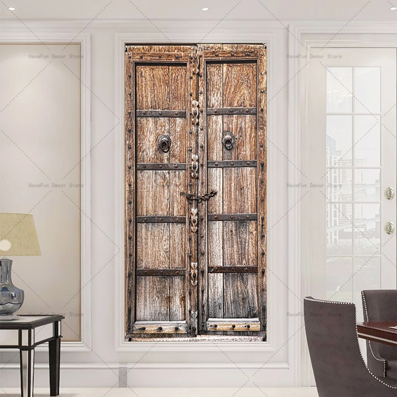 - Autocollant de porte rétro en bois Mars