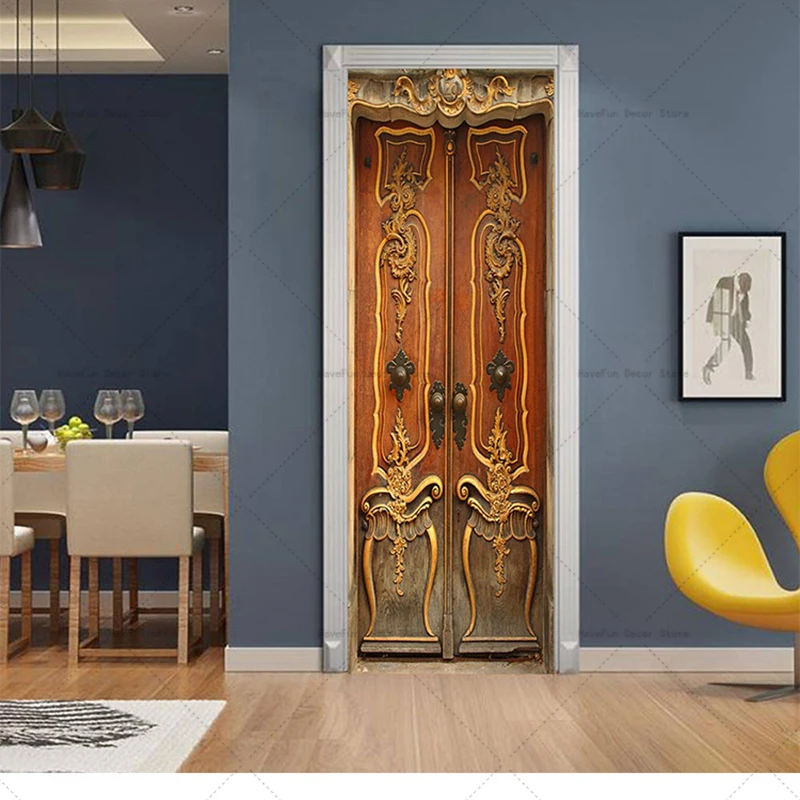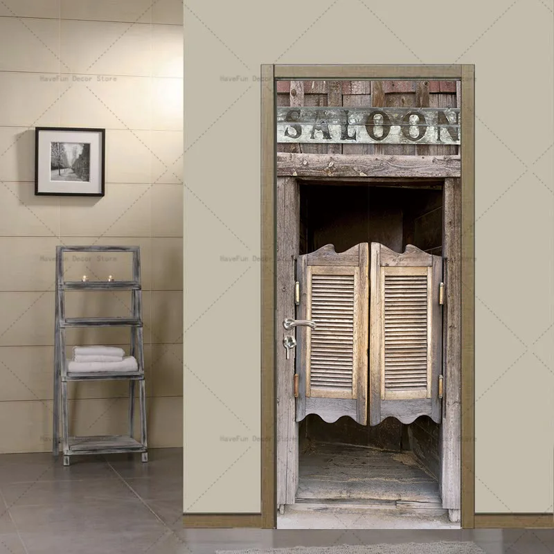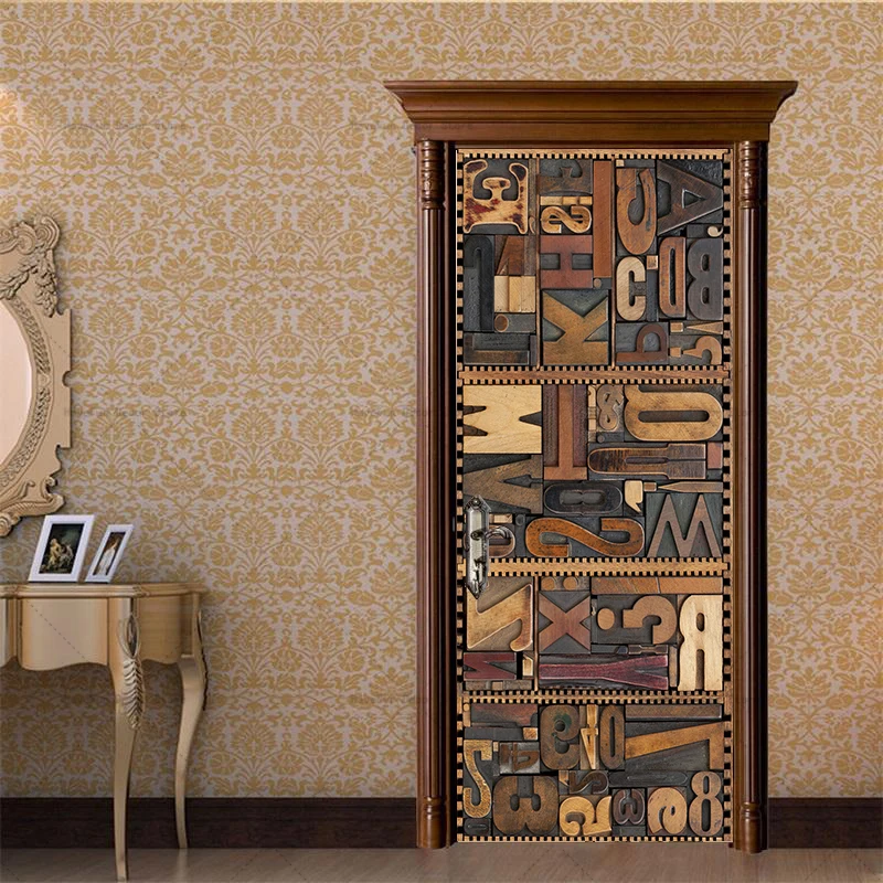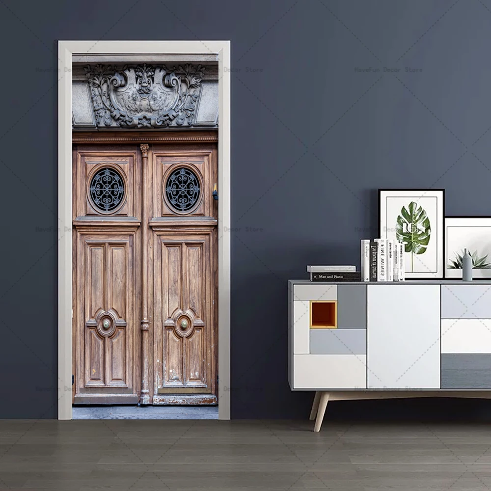 - Autocollant de porte rétro en bois Mars