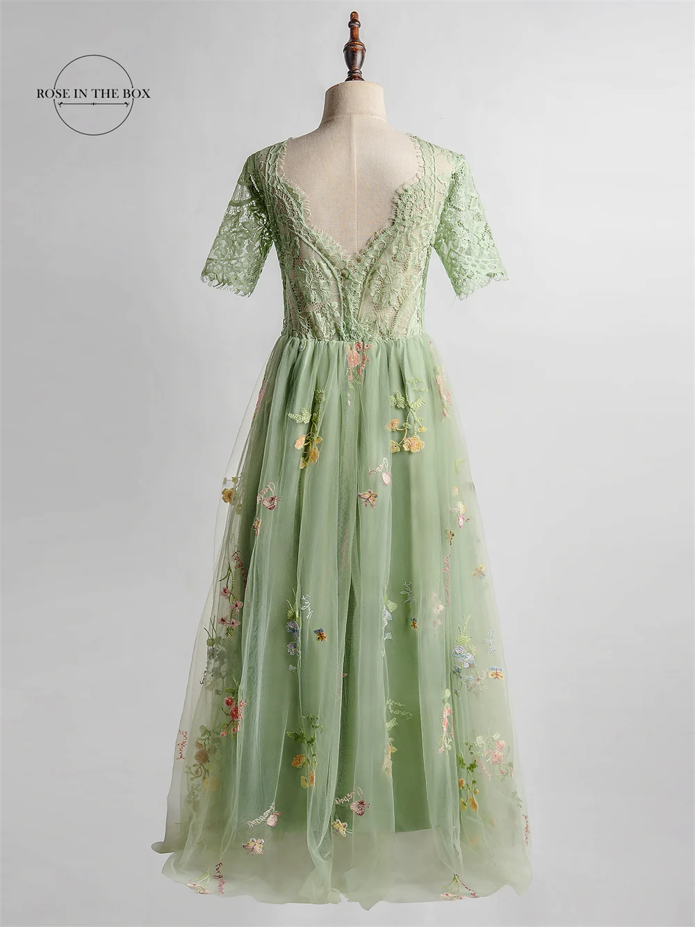 Cette robe fleurie brodée en tulle pour filles est une tenue de Pâques idéale pour l’été 2023. Elle est conçue en dentelle verte sauge et possède des manches courtes. Voici les points importants à retenir :