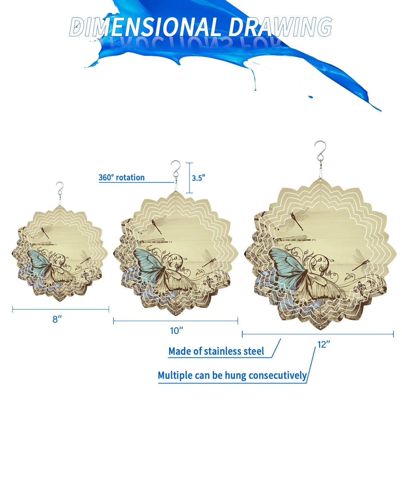 Le « Bois Mars Plante Papillon Rétro Extérieur Vent, Tendance E Jardin délégations En Acier Inoxydable Face Décor À La Maison, Rotation 3D Vent Spinner » est un objet suspendu en acier inoxydable. Ce spinner est fabriqué avec une technologie laser, ce qui lui confère une durabilité et une robustesse exceptionnelles. Sa découpe laser lui donne un bord brillant et des détails exquis. Grâce à sa structure intelligente, ce spinner peut tourner en douceur et avec souplesse dans une brise douce, créant ainsi un effet visuel stéréoscopique 3D. Il est disponible en trois tailles : 8 pouces, 10 pouces et 12 pouces. Ce spinner convient non seulement pour la décoration murale intérieure, mais aussi pour les arbres, les balcons, les piscines de glace, les cours et les jardins en tant que décoration horticole. C’est également un cadeau idéal pour la famille et les amis lors des anniversaires et des fêtes.