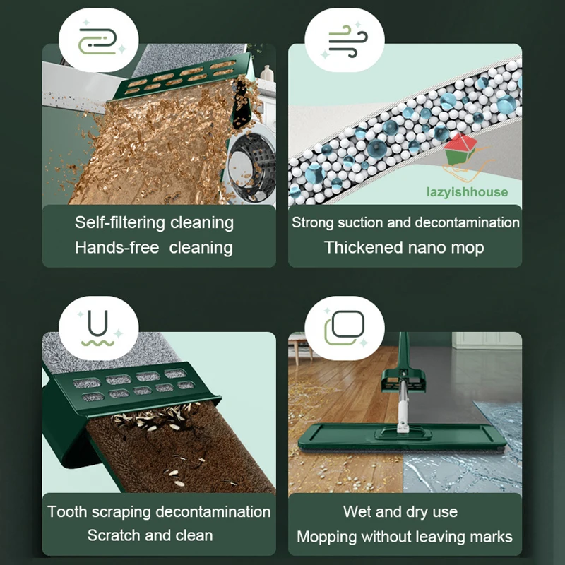 - Vraiment mains libres, double raclette presser et égoutter, pousser et tirer une fois, sécher instantanément
