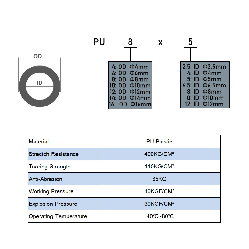 Le « Rouleau entier de tubes à Air en polyuréthane, tuyau de 4mm 6mm 8mm 10mm 12mm en PU pour Tube pneumatique de compresseur 80m » est un tuyau en plastique polyuréthane de haute qualité. Fabriqué conformément aux normes de protection de l’environnement ROHS, il est non toxique et sans danger pour l’environnement.