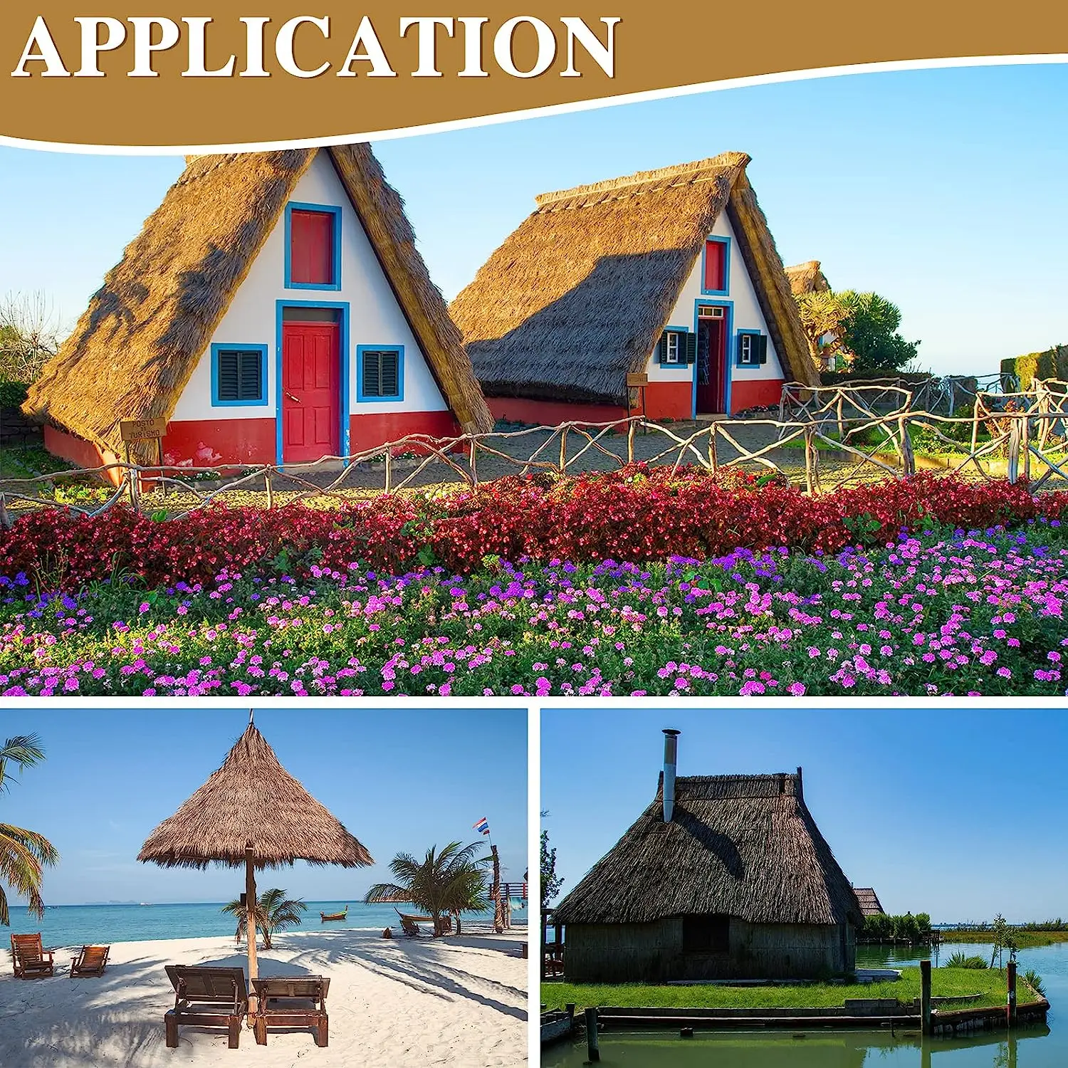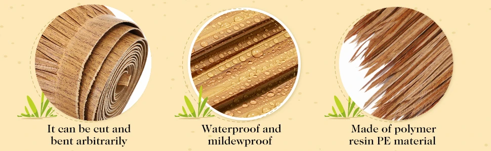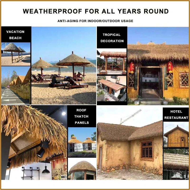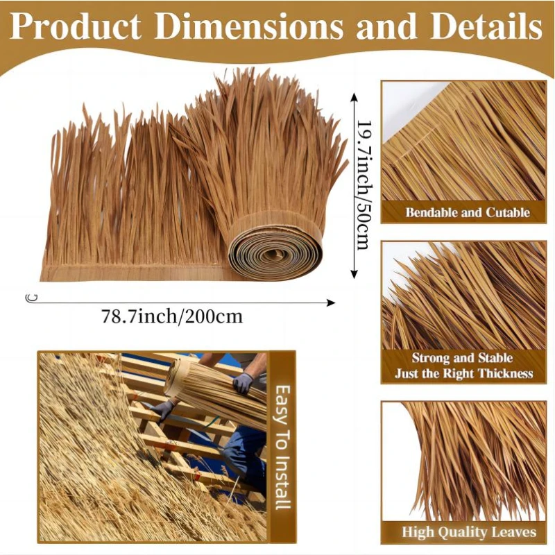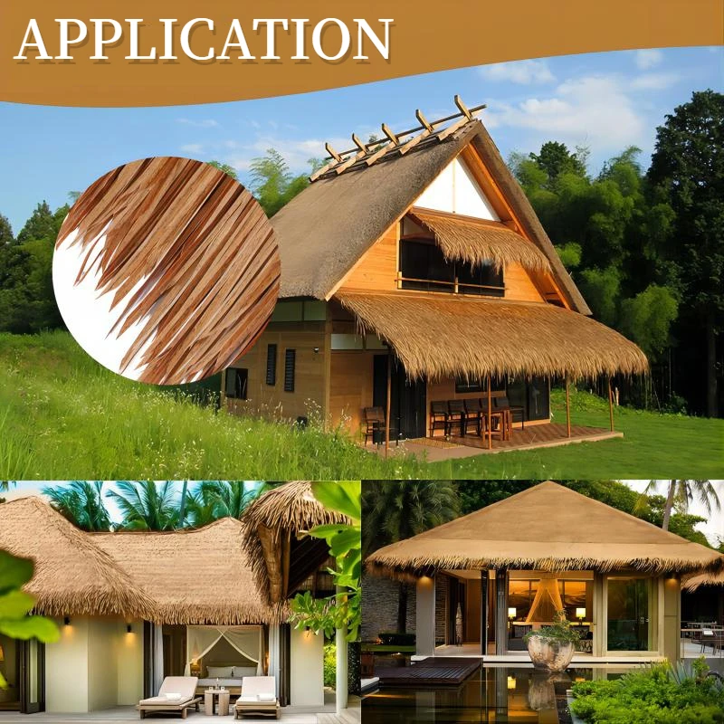 Peut être utilisé pour diverses formes et structures de toit, avec une simulation à 100% de l’effet de paille ou de chaume. L’installation est sûre, pratique et permet de gagner du temps. Si vous avez des questions ou un problème, veuillez nous contacter.