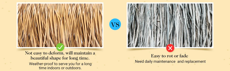 Antirouille. Pas besoin d’entretien quotidien et de remplacement comme le chaume naturel. L’ajout d’ingrédients anti-âge et anti-déformation dans la matière première peut grandement améliorer sa durée de vie.