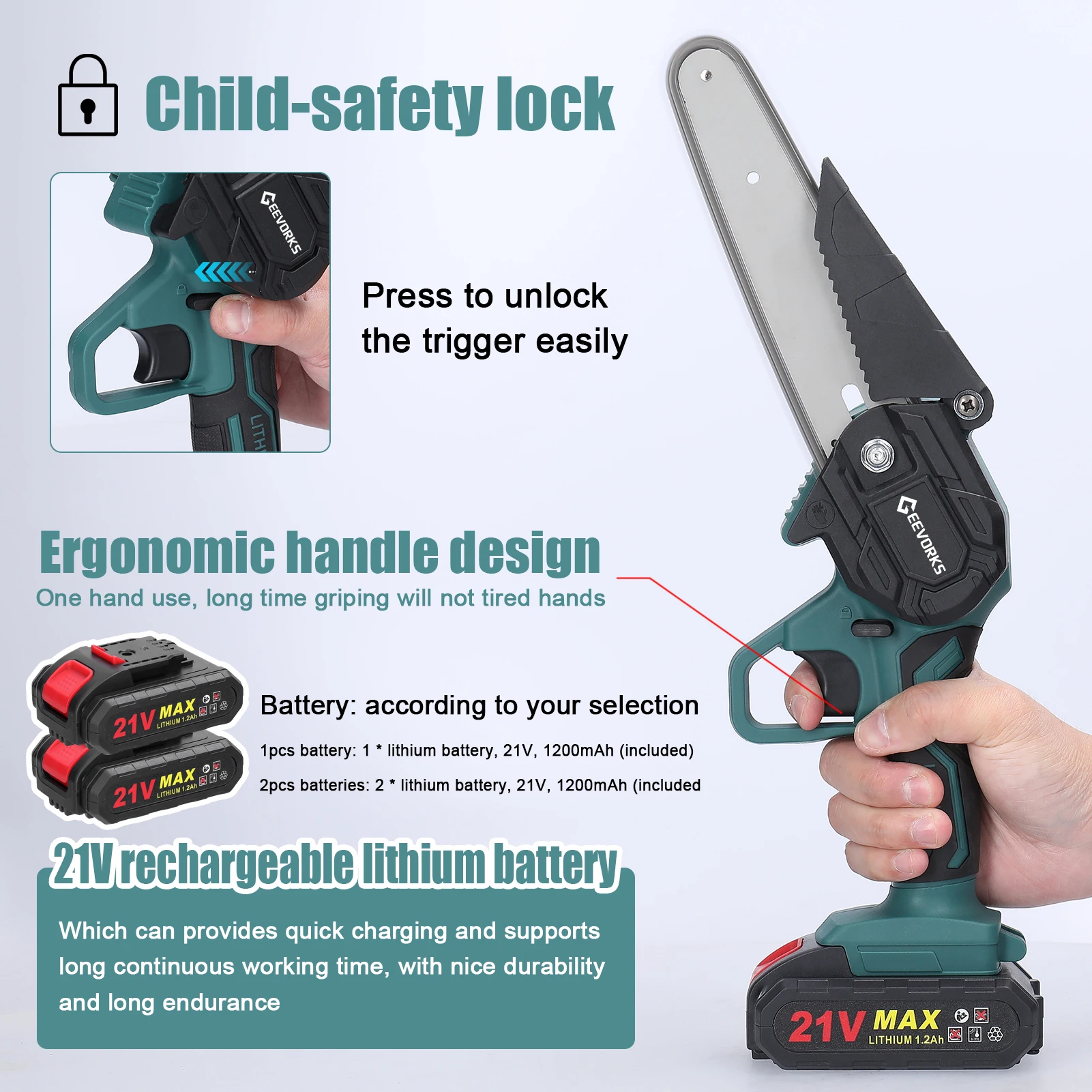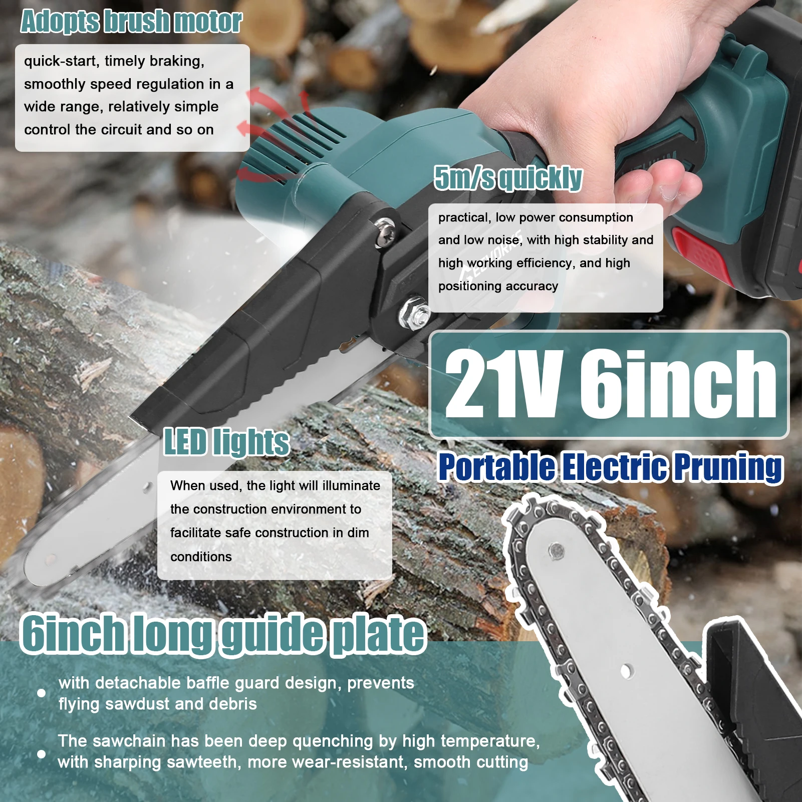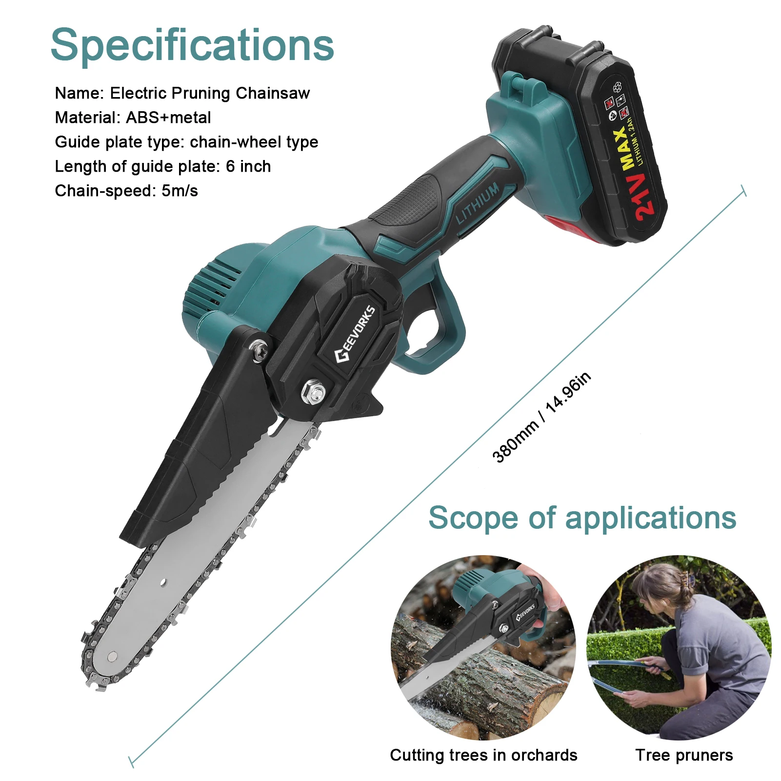 | Modèle | Scie à élaguer électrique 21V, 6 pouces |