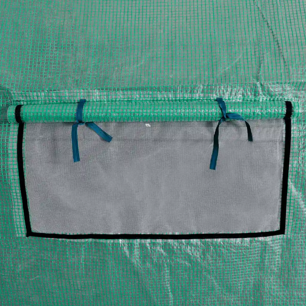 Cette serre est parfaite tant pour les débutants que les jardiniers expérimentés. Elle peut accueillir une grande qualité de plantes, et est idéale pour préserver vos plantes contre les intempéries et les nuisibles. Notre serre est munie d’un film transparent qui permet la lumière d’atteindre vos plants et fleurs. La serre portable est construite à partir d’un revêtement en polyéthylène vert résistant à l’usure avec des renforts quadrillés et d’un solide cadre en acier enduit de poudre pour une durabilité accrue. La couverture aide à protéger vos plantes et à minimiser les dommages extérieurs. C’est une excellente alternative à une serre en verre traditionnelle. La serre comporte une porte d’entrée avec double fermeture éclair, qui peut être enroulée, pour faciliter l’entrée et la ventilation. 8 fenêtres (4 de chaque côté) avec des housses enroulables sont également parfaites pour la ventilation croisée les jours chauds. L’assemblage est vraiment facile. Cette serre avec tunnel peut être rapidement fixée avec la corde incluse. Aucun outil spécial n’est requis. Veuillez noter que le toit de notre serre ne peut pas résister à des fortes chutes de neige ou au vent fort.