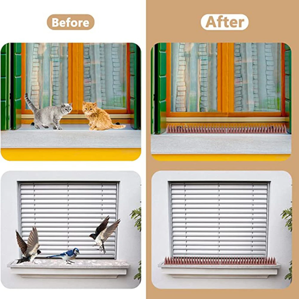 Les pointes peuvent facilement être coupées pour s’adapter et placer sur la poutre transversale sous le toit du patio. Vous pouvez les fixer en place avec des vis ou des attaches solides. Elles sont également dotées de 3 segments séparables flexibles, ce qui vous permet de les couper facilement à la longueur désirée pour les installer sur une clôture, une balustrade, un toit, un hangar, un mur, une porte, un bord, etc.