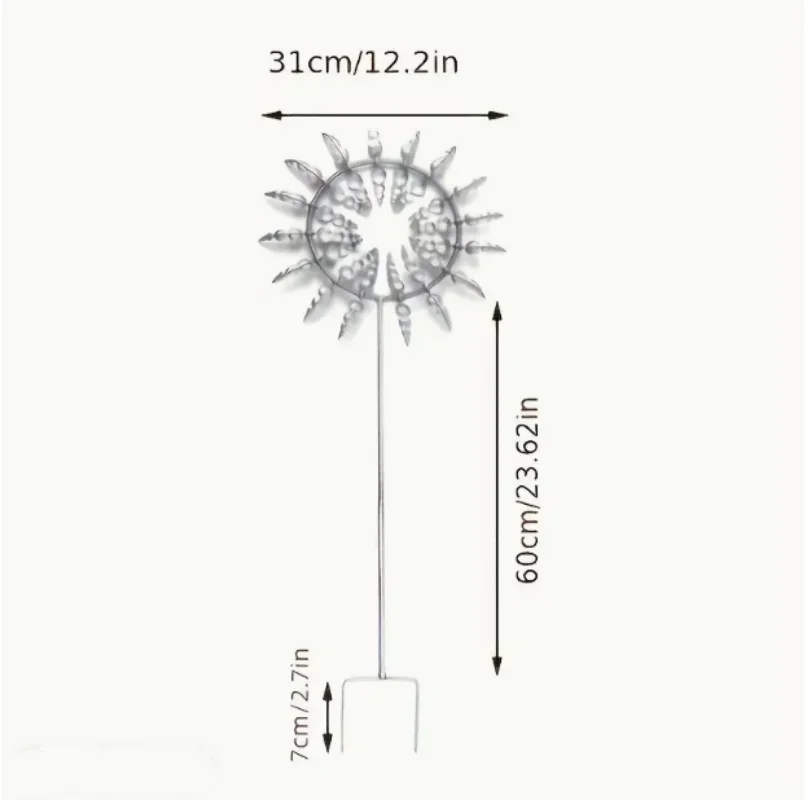 Ce moulin à vent décoratif de jardinage repose uniquement sur l’énergie éolienne, aucun accessoire supplémentaire n’est nécessaire. Il vous suffit de le placer dans un endroit ensoleillé et venteux, et le moulinet métallique unique et magique tournera avec le vent dans diverses formes magnifiques et futuristes. Les pinwheels en métal brillent au soleil et vous pouvez profiter au maximum de vos décorations de jardin.