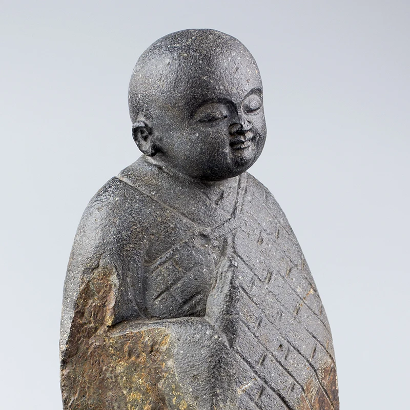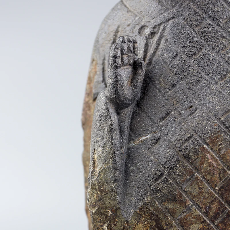 La couleur et la texture de la pierre naturelle sont habilement utilisées pour créer la soutane de moine.