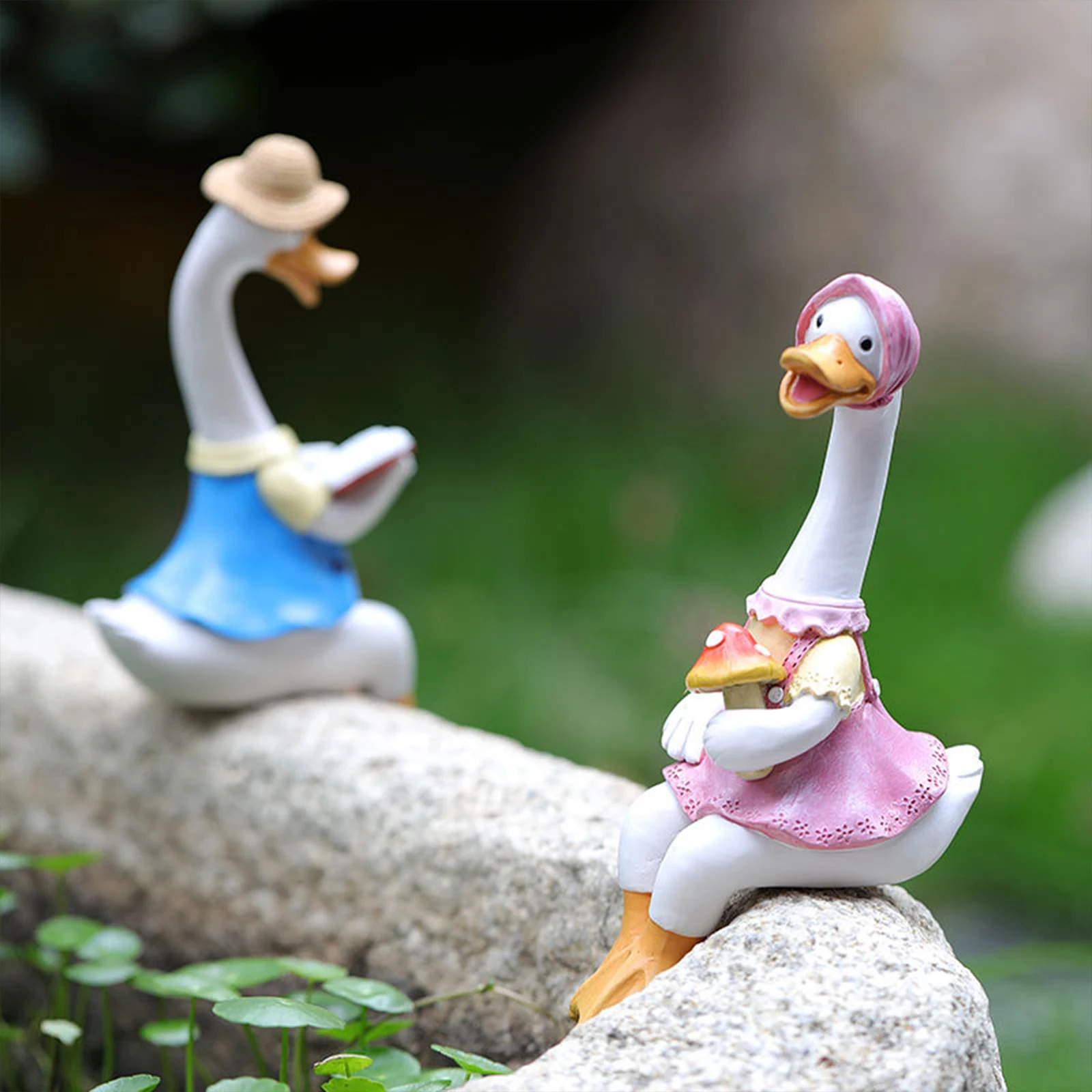 Les figurines de canards en résine représentant un couple assis sont réalisées à la main avec soin. Elles sont résistantes aux intempéries et apporteront une touche mignonnes à votre jardin.