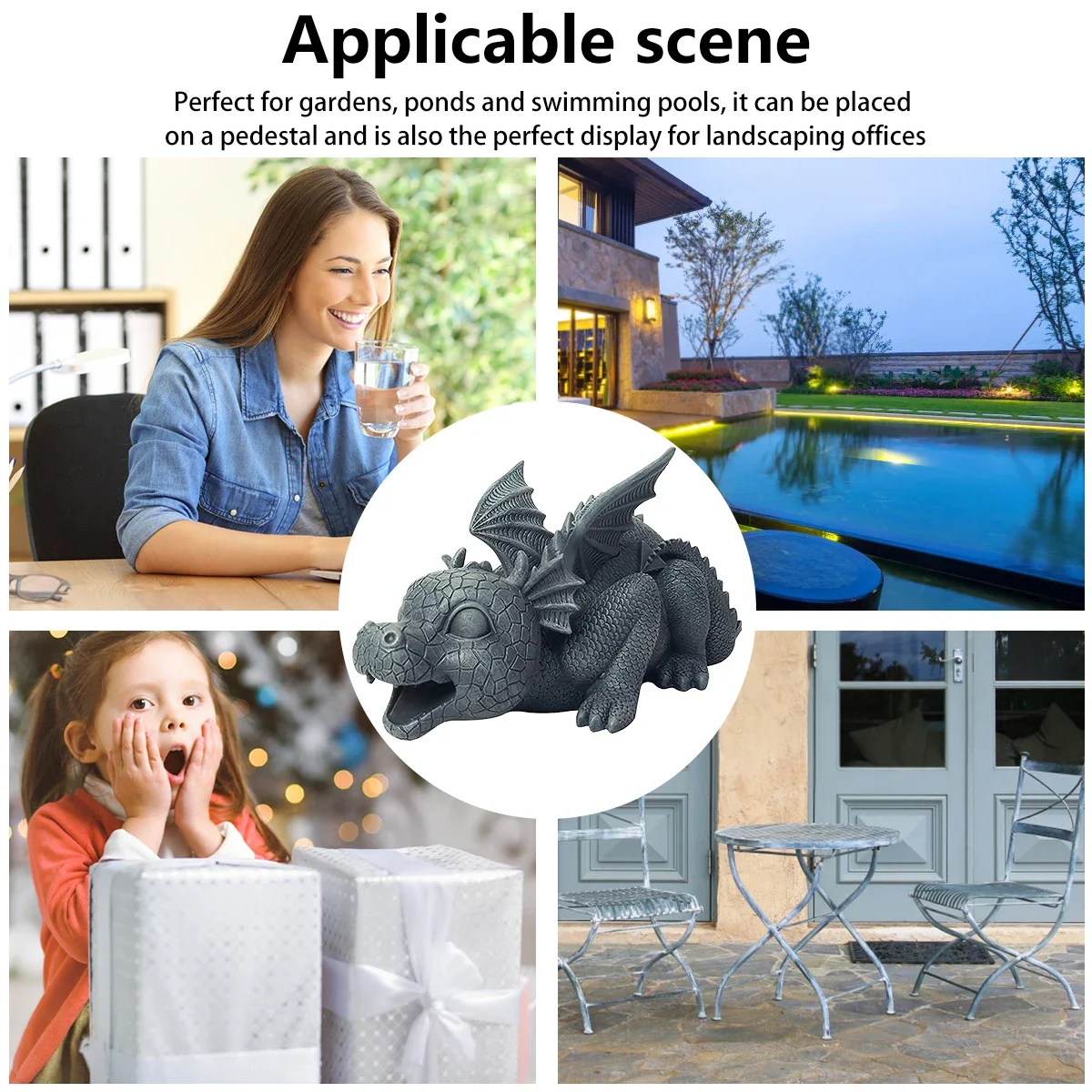 | Apparence réaliste | La statue de dragon à jet d’eau a une peau texturée écailleuse et des ailes épineuses |