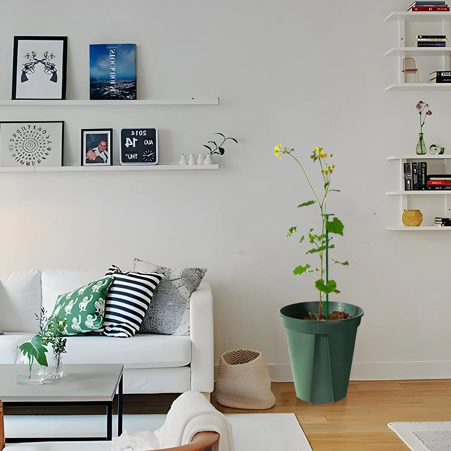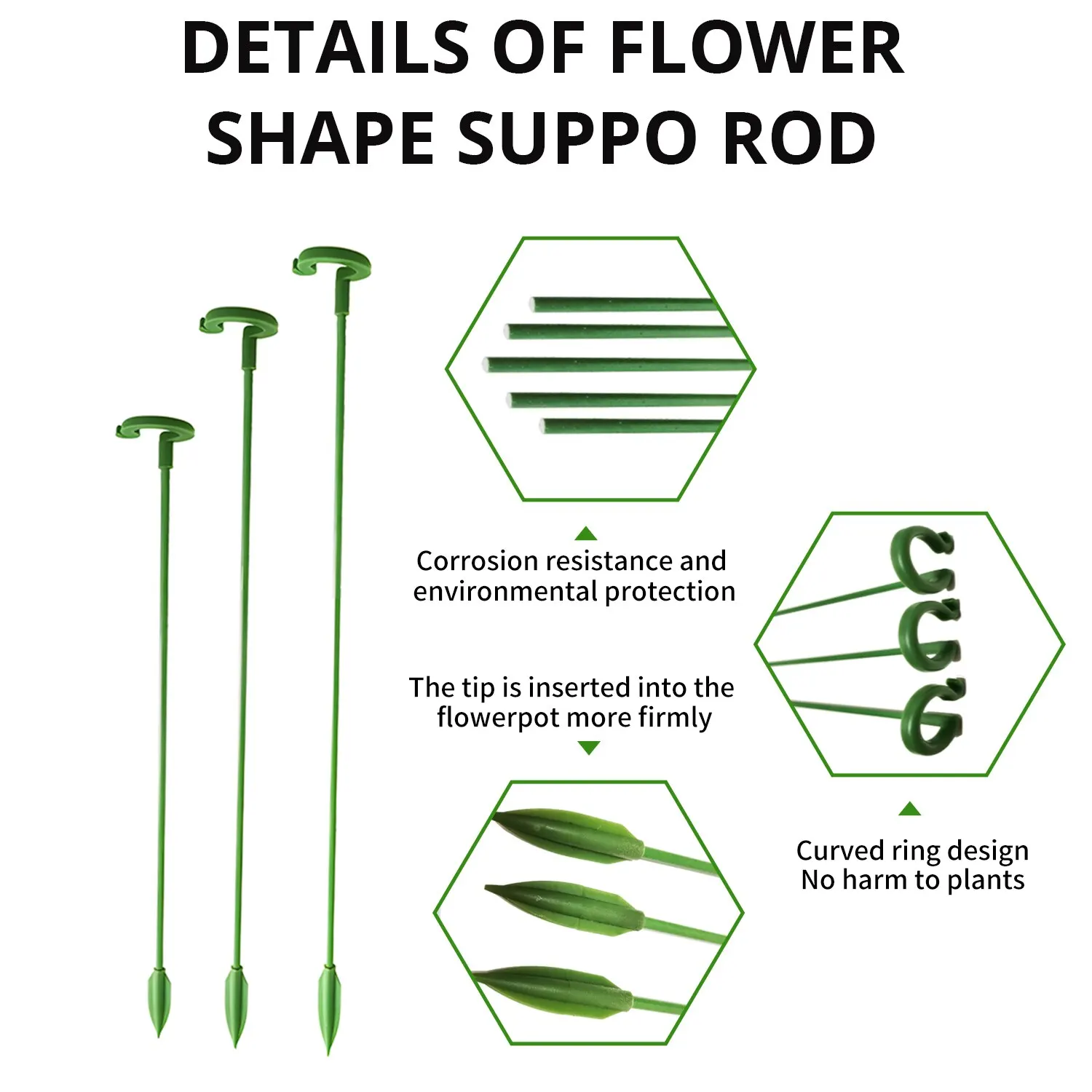 Fabriqué à partir de plastique de haute qualité, ce support de fleur est durable et résistant, capable de résister à des conditions météorologiques difficiles. Il offre un soutien fiable à vos plantes et les protège efficacement contre le vent fort, les fortes pluies et même leur propre forte floraison.