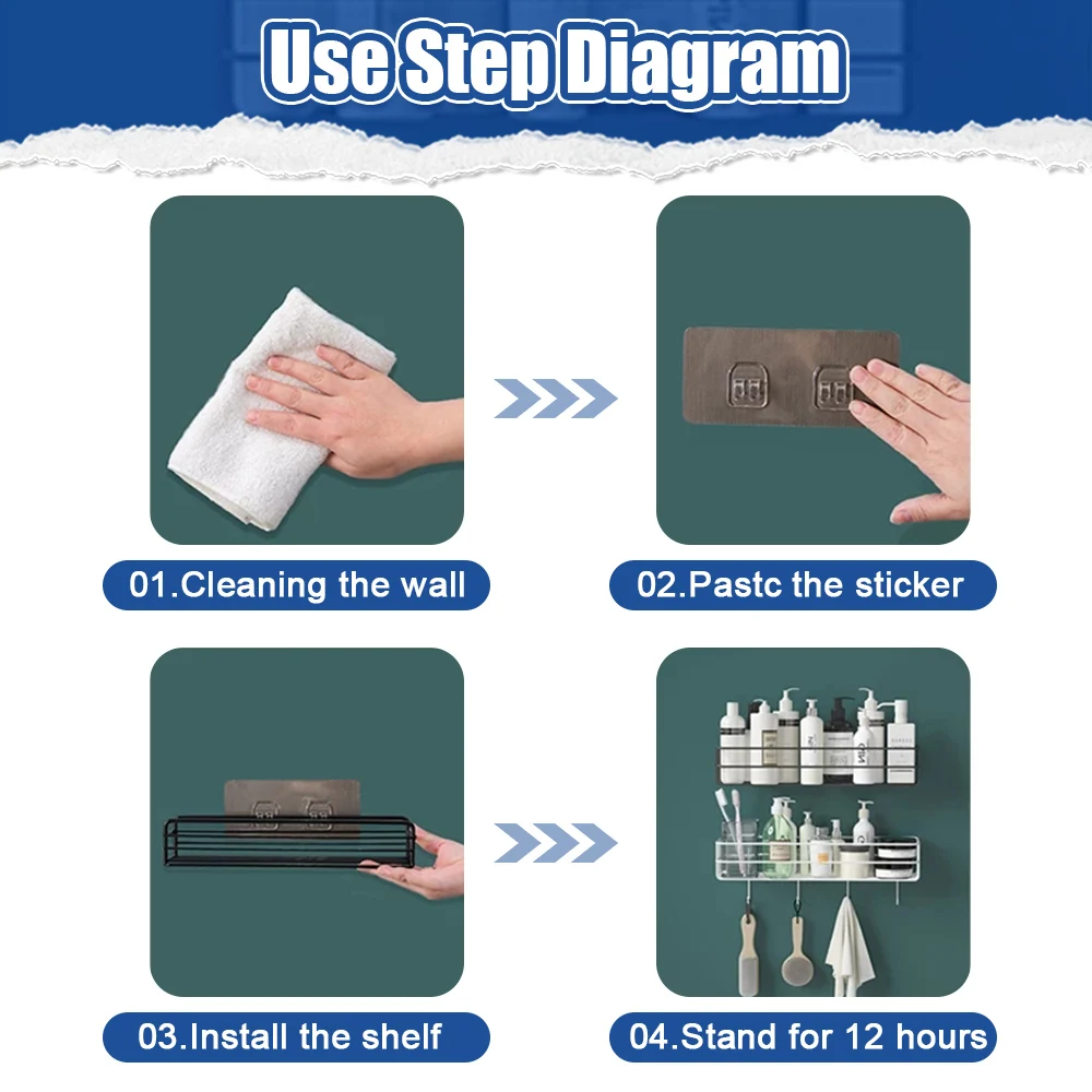 Le support de rangement est facile à installer et ne nécessite aucun perçage. Il suffit de le coller sur le mur propre et de le laisser reposer pendant 24 heures avant de l’utiliser.