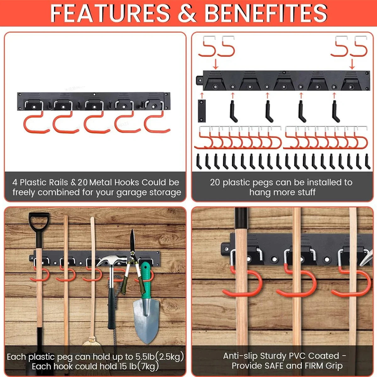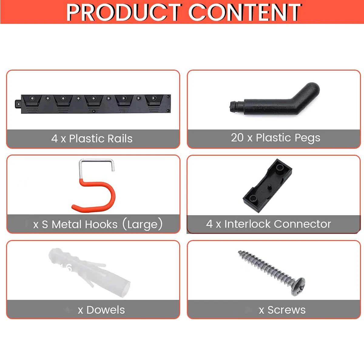 Le système de stockage réglable est fabriqué en matériau ABS robuste de haute qualité pour assurer une excellente qualité. Chaque unité de stockage mesure 16 pouces de long, soit un total de 4 rails, jusqu’à 64 pouces. Chaque crochet est livré avec une broche de revêtement en vinyle antidérapant pour de meilleurs outils de fixation.