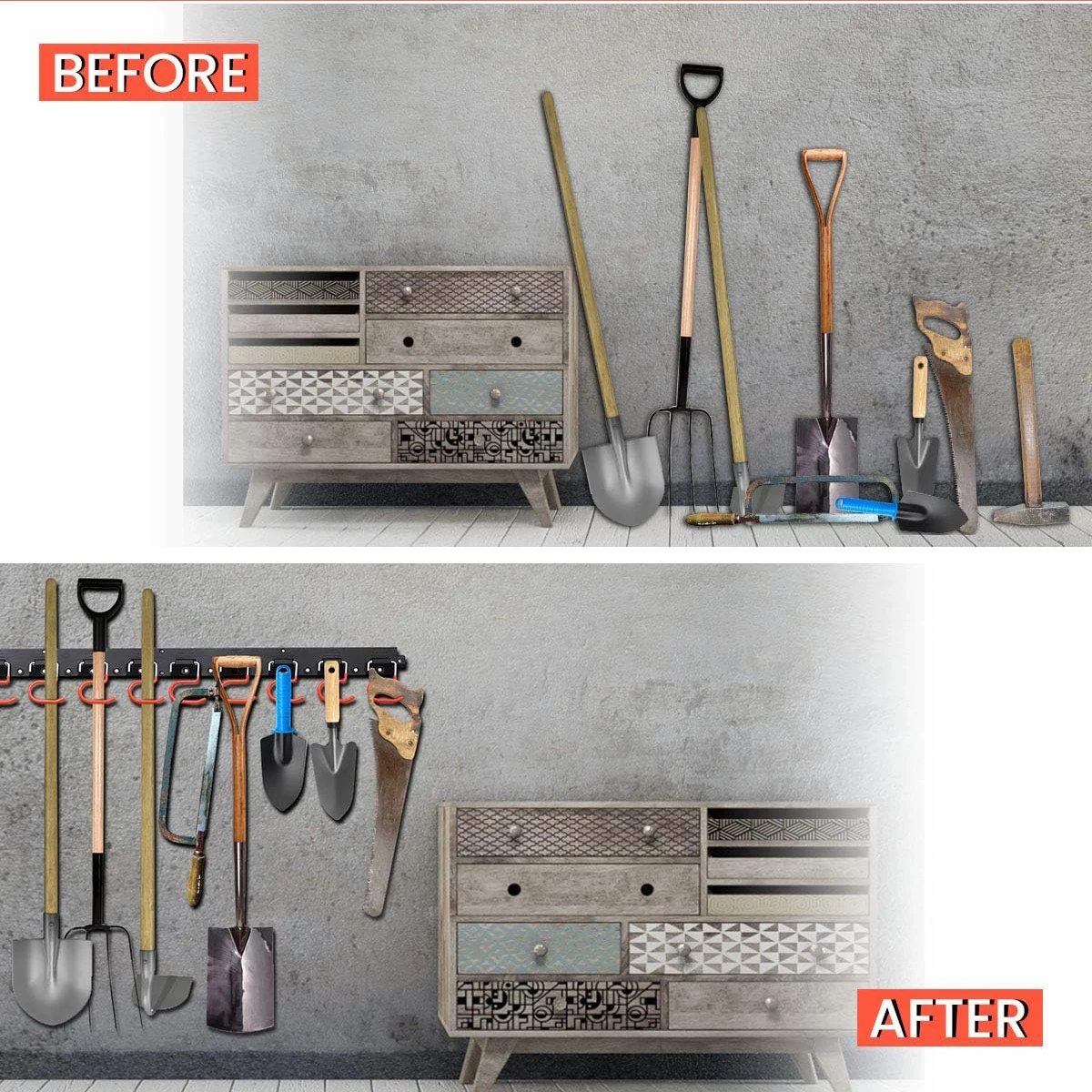 Le cintre à outils est très approprié pour ranger les vadrouilles suspendues, les pelles, les balais, la pelle, le râteau et d’autres outils de jardinage dans les garages, les sous-sols ou les remises.
