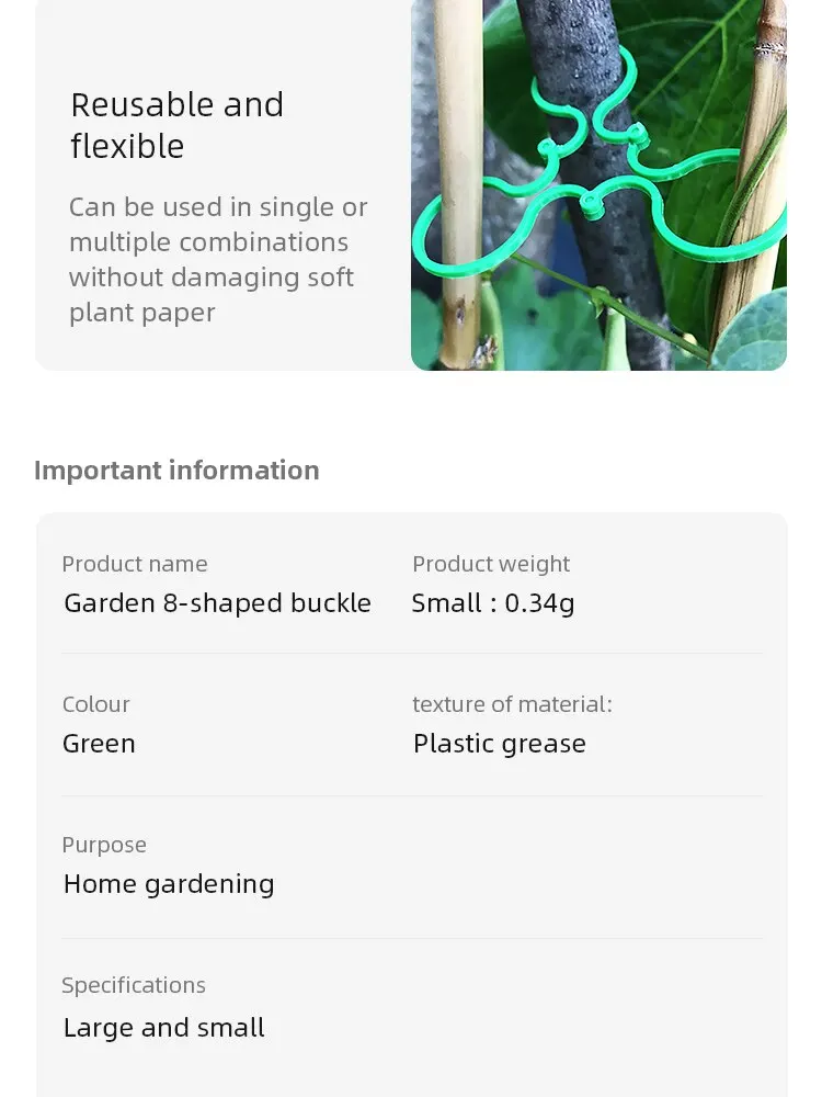 Ces clips peuvent également être utilisés pour attacher des câbles ou pour l’organisation d’articles dans le jardin. Leur conception simple les rend faciles à utiliser, même pour les personnes qui ne sont pas expérimentées dans le jardinage.