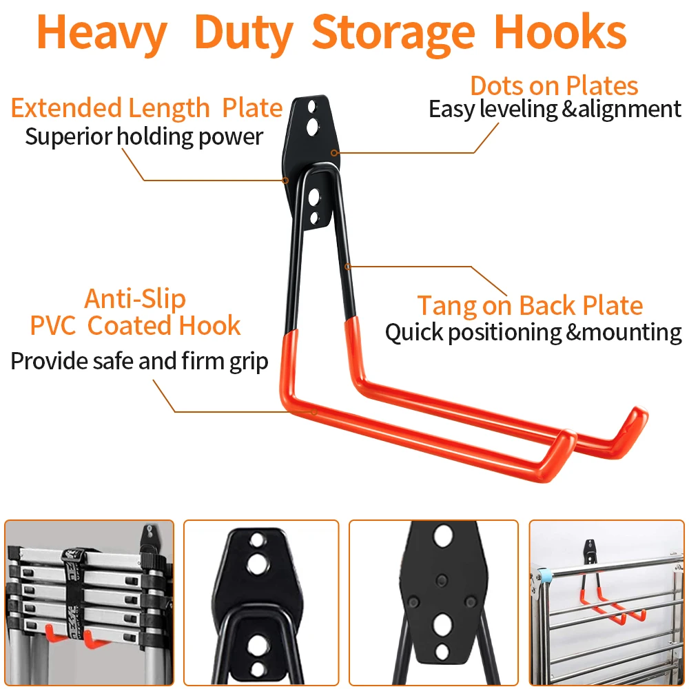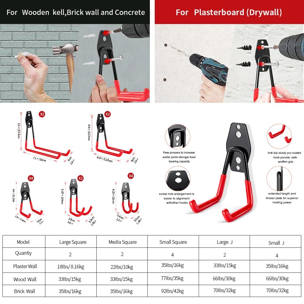 Ces crochets muraux de garage robustes sont livrés avec 2 types de vis. Les ancres d’expansion noires et la petite