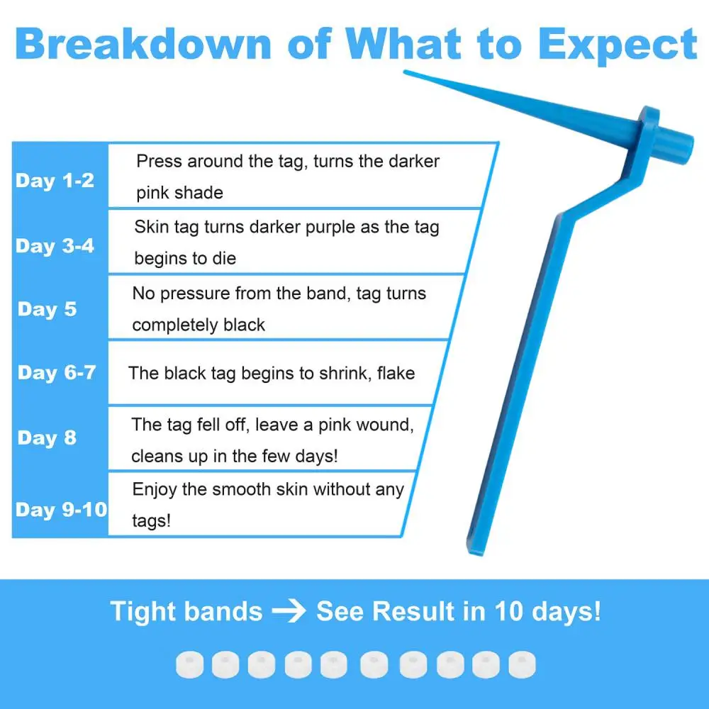• Utilisation: mettre le cône sur le néoplasme de la peau, appuyer sur le dispositif de retrait dur, et pousser le bandage sur le néoplasme de la peau.