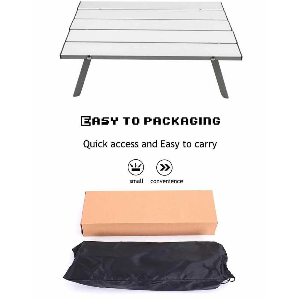 La table pliante de camping légère de pique-nique et voyage est une mini table pliante idéale pour le barbecue et bureau portable pour ordinateur. Fabriquée en alliage d’aluminium 6061 super léger, elle offre une haute résistance et une forte capacité de roulement. Le bureau peut également être démonté et plié, ce qui permet de le ranger facilement dans un sac à main avec le support. Le tuyau en acier épaissi rend la table plus sûre et stable. Cette table polyvalente est parfaite pour la pêche, les fêtes, les barbecues extérieurs et le camping.