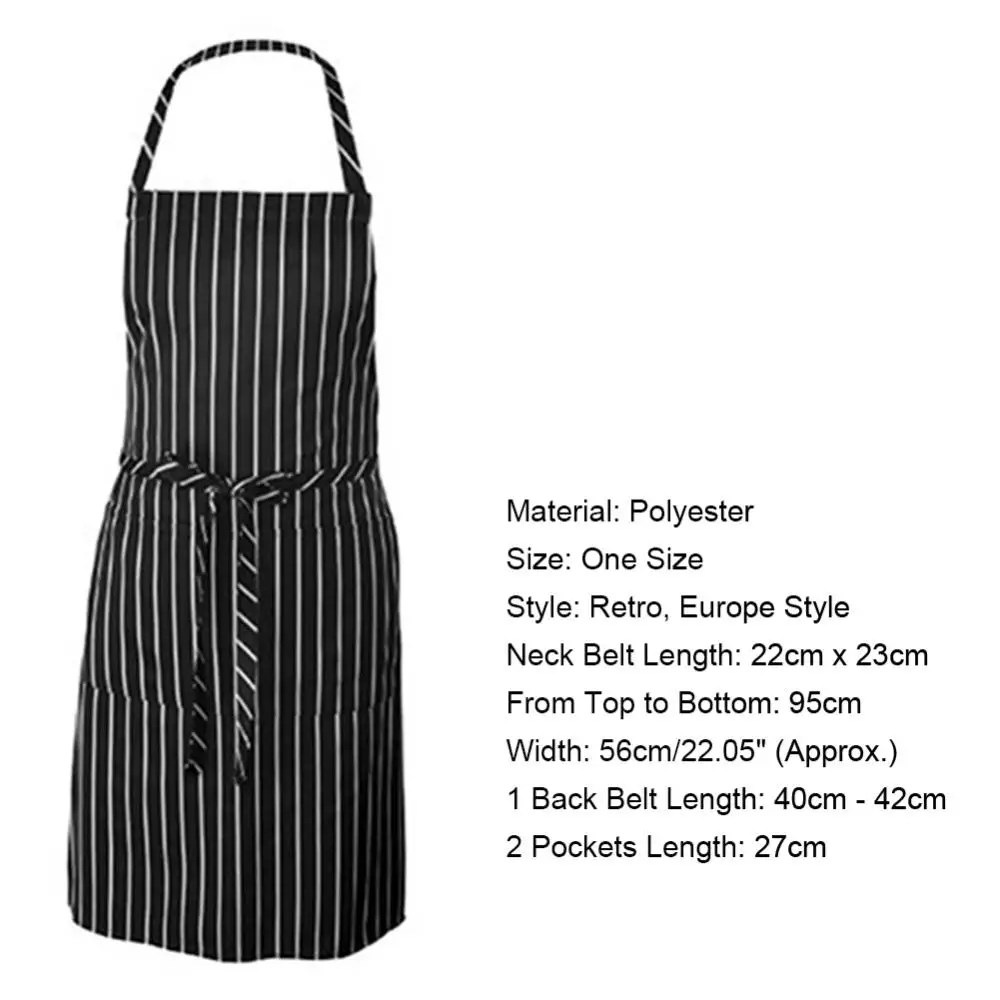 Le tablier à bavette réglable à rayures noires pour adultes avec 2 poches est un tablier de cuisine de style rétro et européen. Il est conçu en polyester durable qui résiste aux conditions de cuisson difficiles tout en ne rétrécissant pas au lavage. Ce tablier, avec sa couleur sombre et ses accents de bandes blanches, est parfait pour les dîners ou lors de la cuisson à la maison. Il est également doté de deux poches séparées de chaque côté pour un rangement facile.