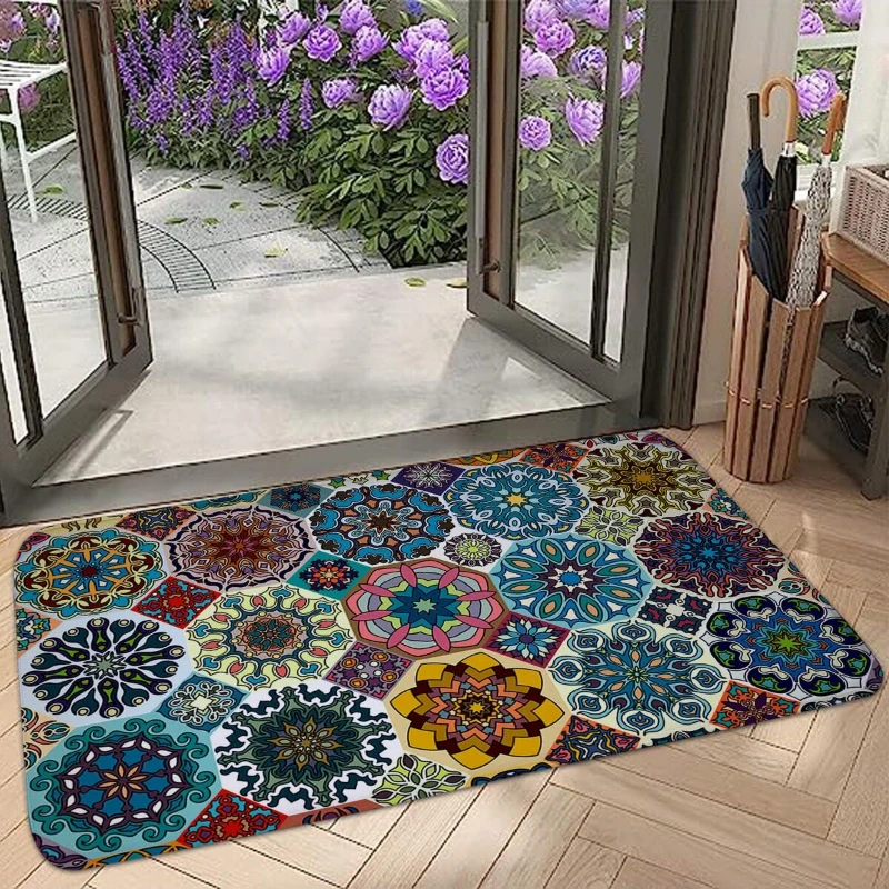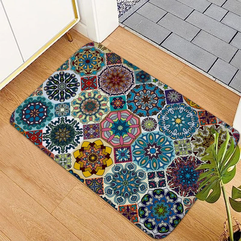 - Tapis antidérapant motif mandala vintage, petits tapis de sol en polymères, tapis traditionnel lea, marocain, bohème, cuisine, jardin
