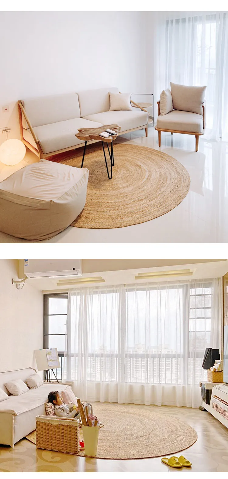 Le tapis rond en rotin fait à la main est un excellent choix pour ceux qui recherchent une décoration naturelle et authentique.