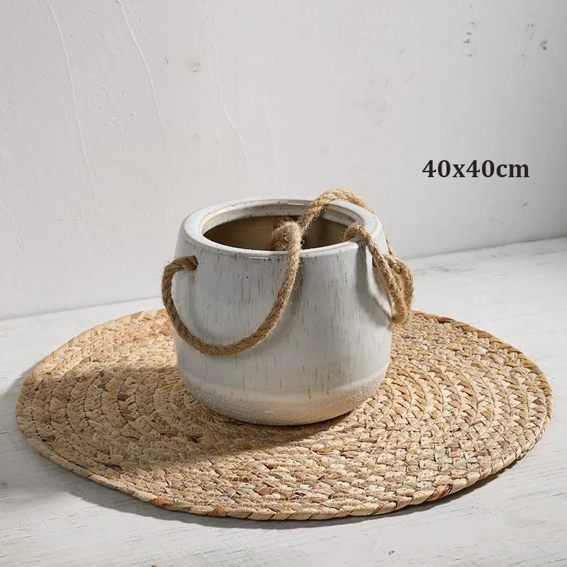 Il est important de noter que la couleur peut légèrement différer en raison de l’éclairage et des réglages du moniteur. Cependant, la beauté naturelle du rotin tissé à la main est conservée. La taille est mesurée manuellement avec une tolérance de 1 à 3 cm, ce qui permet une personnalisation en fonction des besoins de chaque espace.