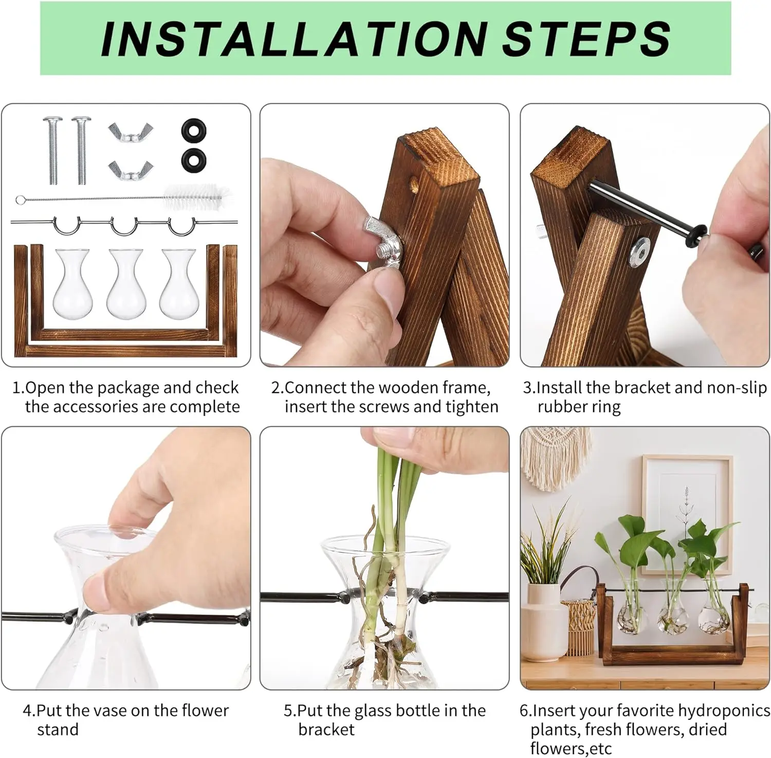 Test et Avis sur le Plant Terrarium avec Wooden Stand Planter Bulb Glass Vase Metal Swivel Holder Tabletop