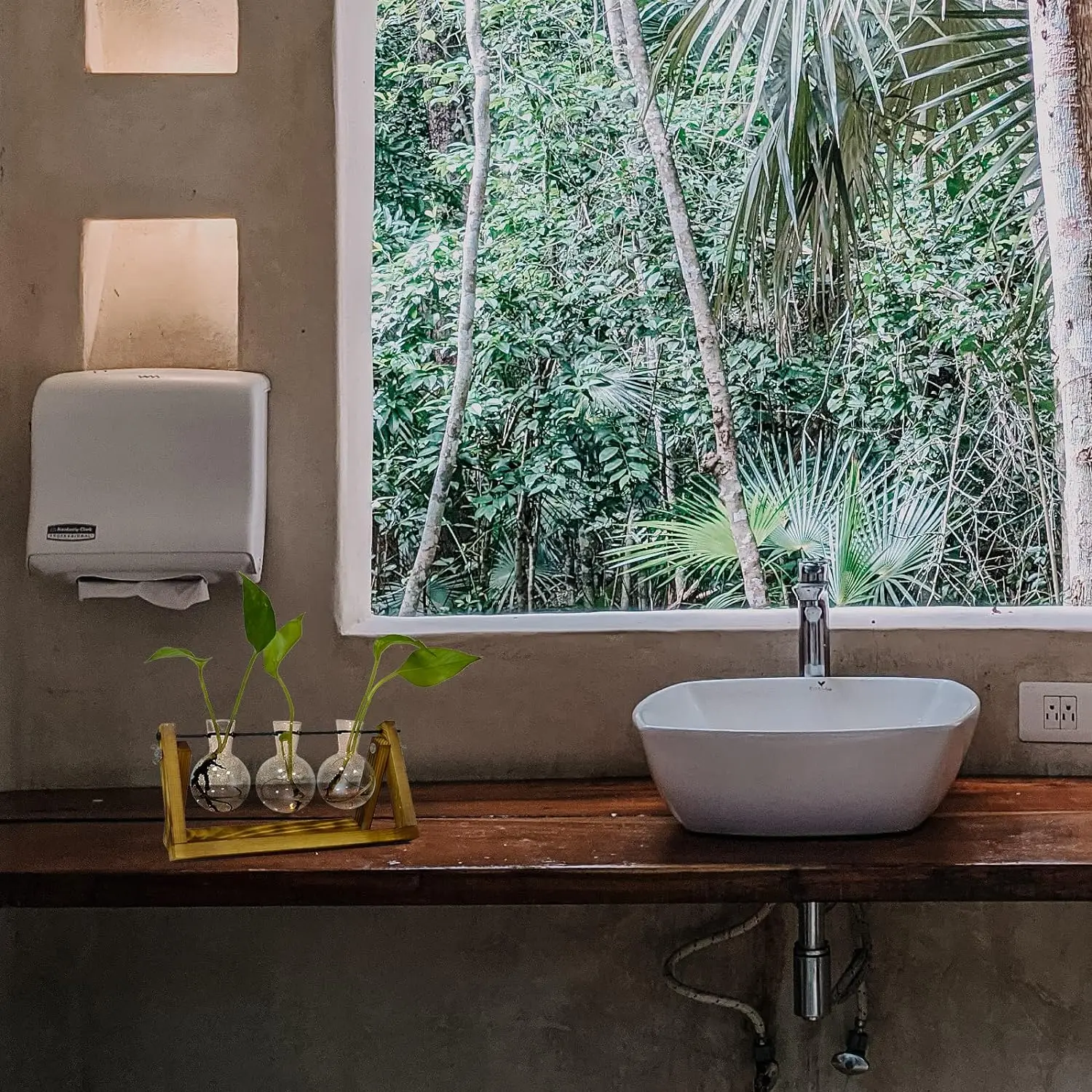 | Design | Combinaison de bois naturel et de verre borosilicaté |
