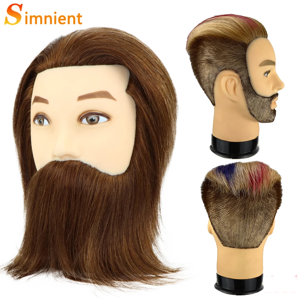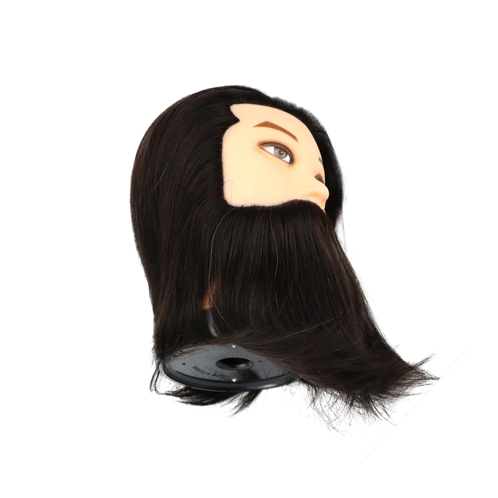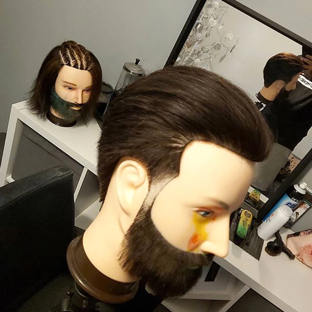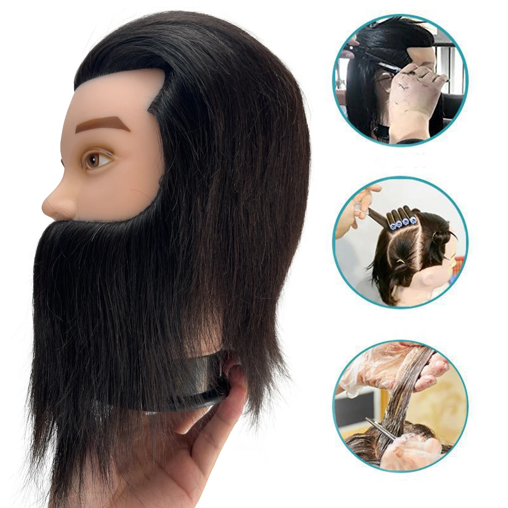 Male 100% Real Human Hair Mannequin Head With Beard Professional Mannequin Practice Training Head Wig With Stand For Hairstyles