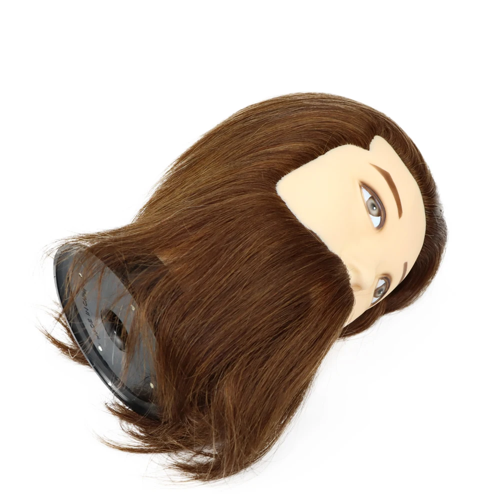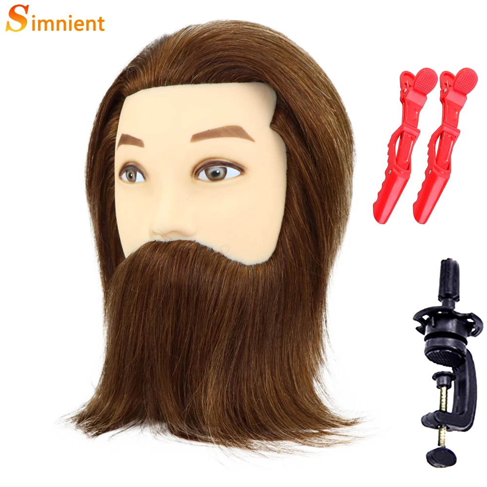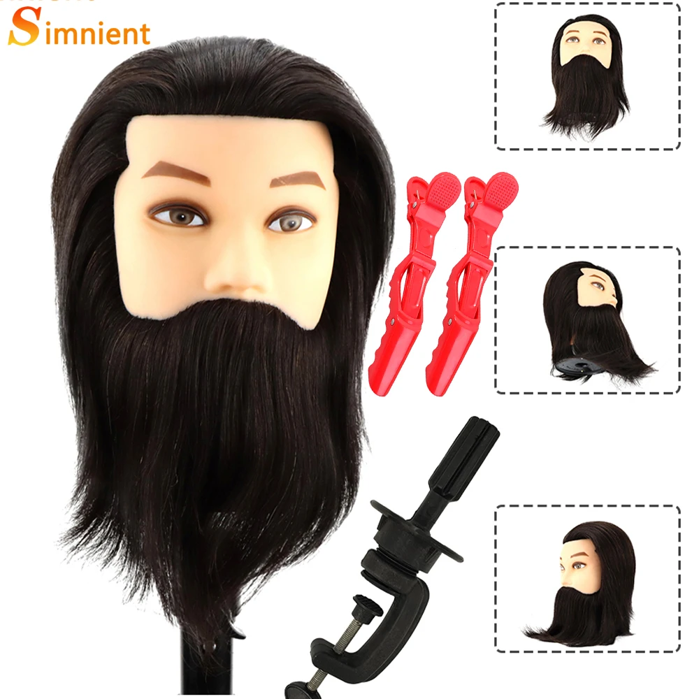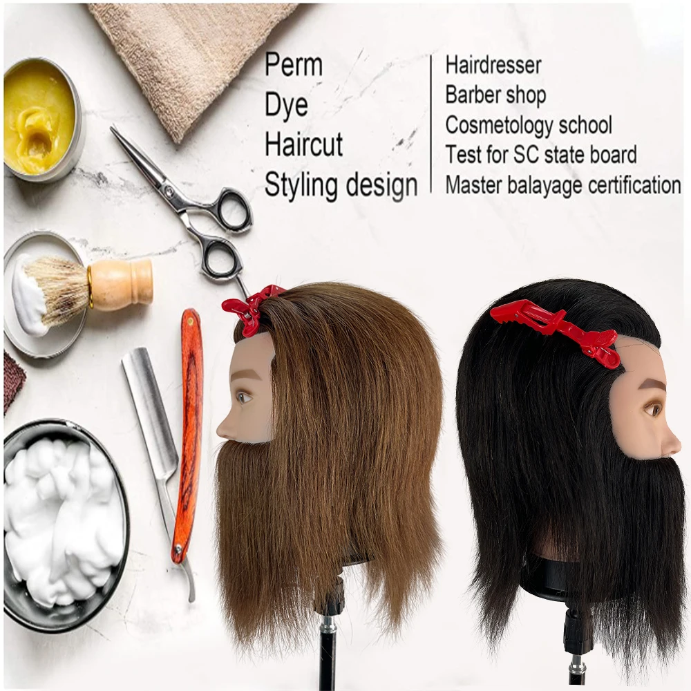 Male 100% Real Human Hair Mannequin Head With Beard Professional Mannequin Practice Training Head Wig With Stand For Hairstyles