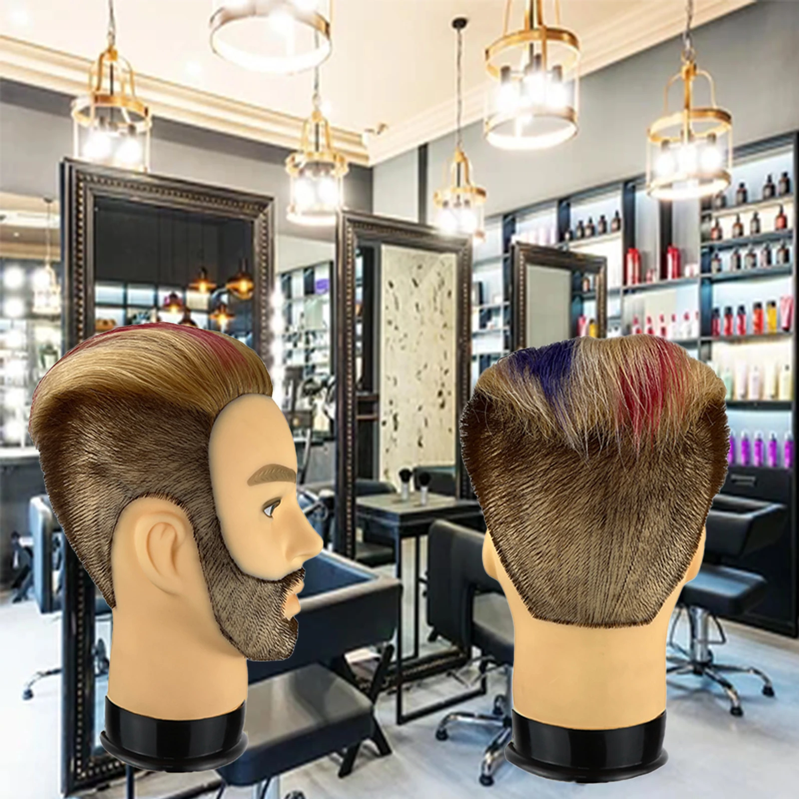 • Natural hairlines around whole head, fantastic hair density. Male mannequin head with beard implanted in manually