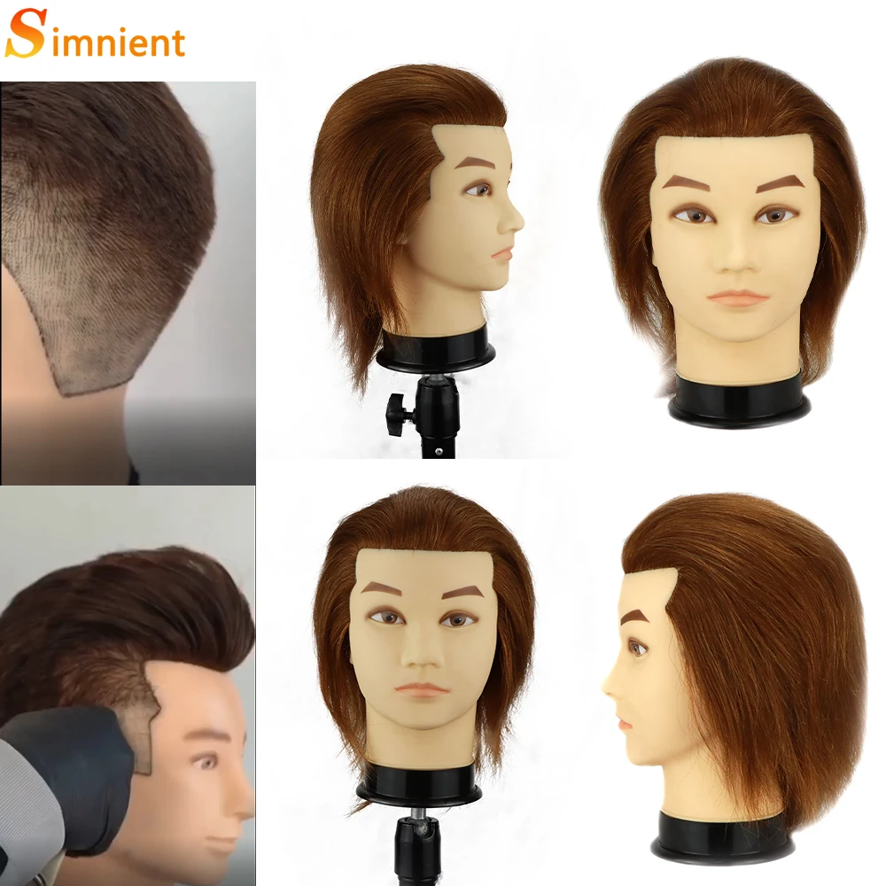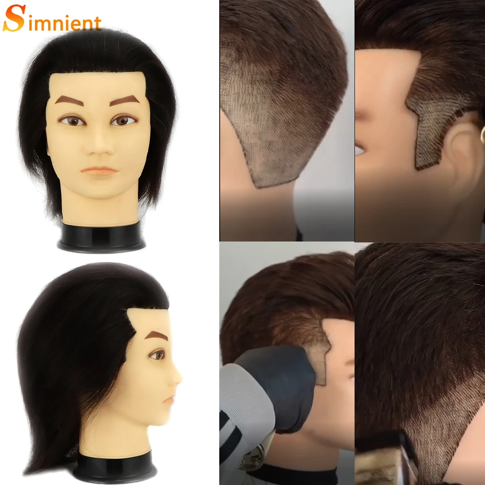 Tête de Mannequin Masculin Simnient avec 100% Vrais Cheveux Humains pour la Pratique du Coiffeur, Formation en Cosmétologie, Tête de Beurre pour la Coiffure