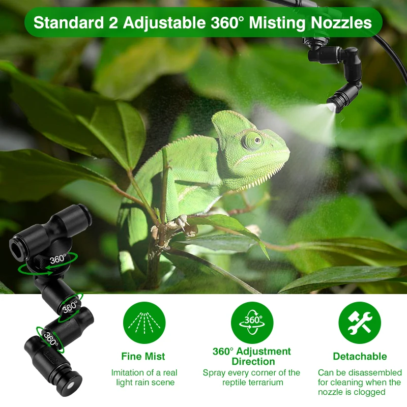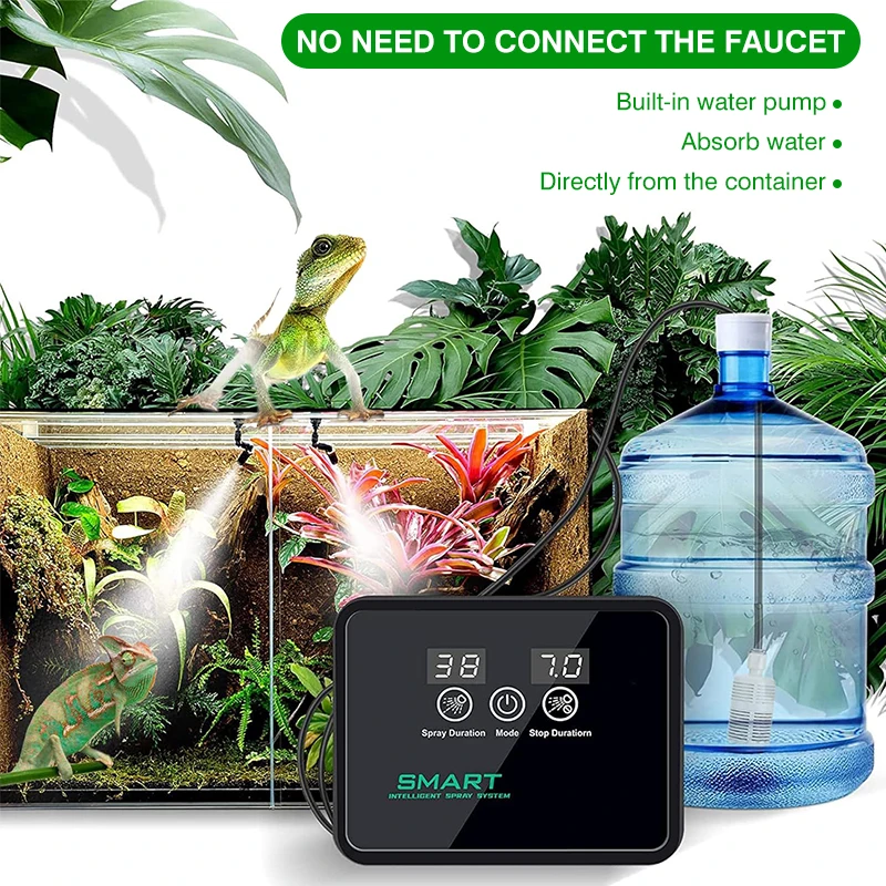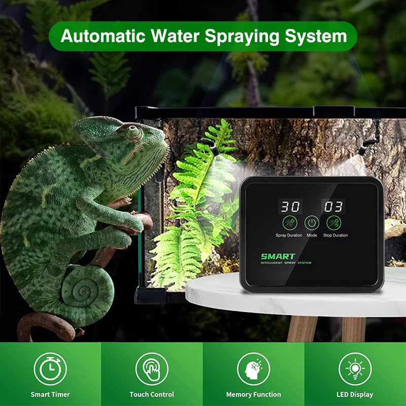Voici les points importants à retenir du produit Humidificateur Électronique Intelligent pour Reptile, Système de Brume existent, Contrôle de Pulvérisation d’Eau de Forêt Tropicale, Arroseur de Terrariums: