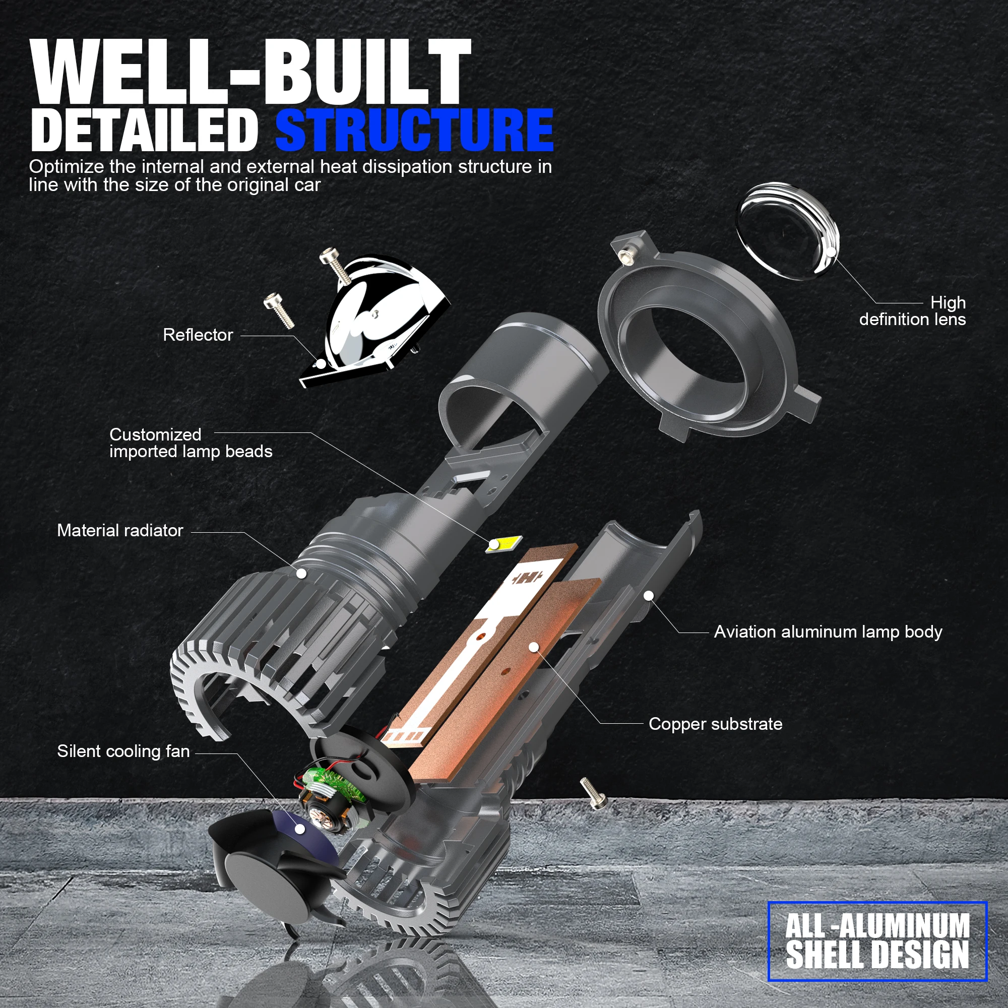 Le Mini budgétaire LED pour voiture est une ampoule de sauna de haute qualité dotée d’une lentille bi-LED. Il s’agit d’une lampe de sauna H4 offrant un faisceau haut et bas pour les moteurs de voitures. Avec une puissance de 100W, cette lampe garantit une luminosité optimale pour une conduite sécurisée. Fabriquée en aluminium profilé de qualité aéronautique 6063, elle offre une haute résistance et une durabilité exceptionnelle. Son joint d’eau et de poussière classé IP67 la rend résistante aux conditions difficiles.