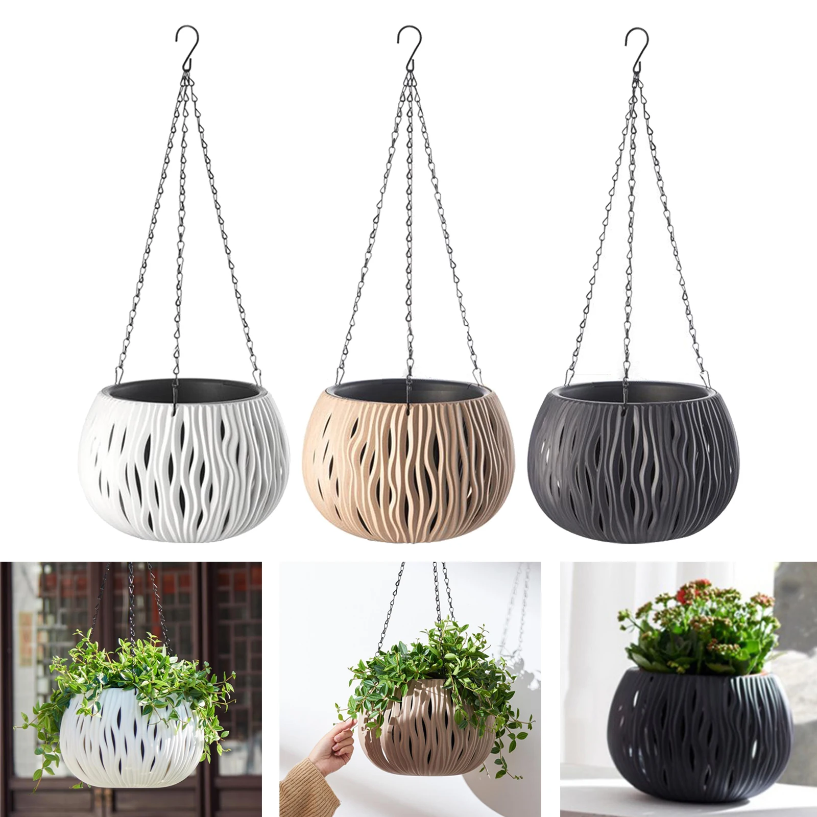 Le pot de fleur suspendu en plastique est très à la mode et moderne, parfait pour la décoration de la maison moderne. Il est très approprié pour les fleurs, l’herbe, les plantes succulentes, les cactus et les plantes simulées. C’est le pot de fleur préféré pour accrocher autour de la maison, du bureau, du jardin, du porche, du balcon, du rebord de fenêtre, etc.