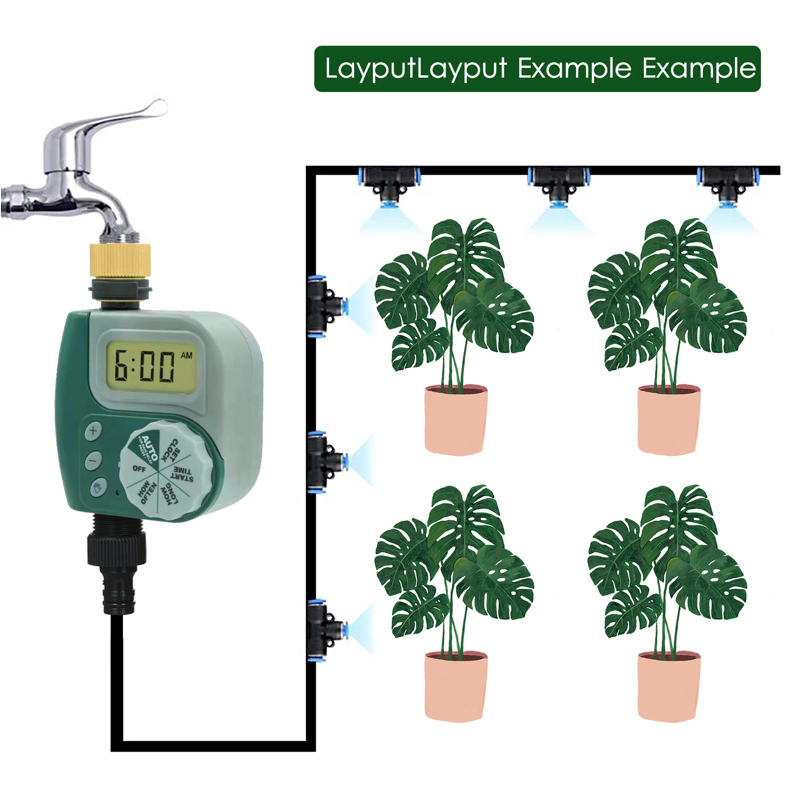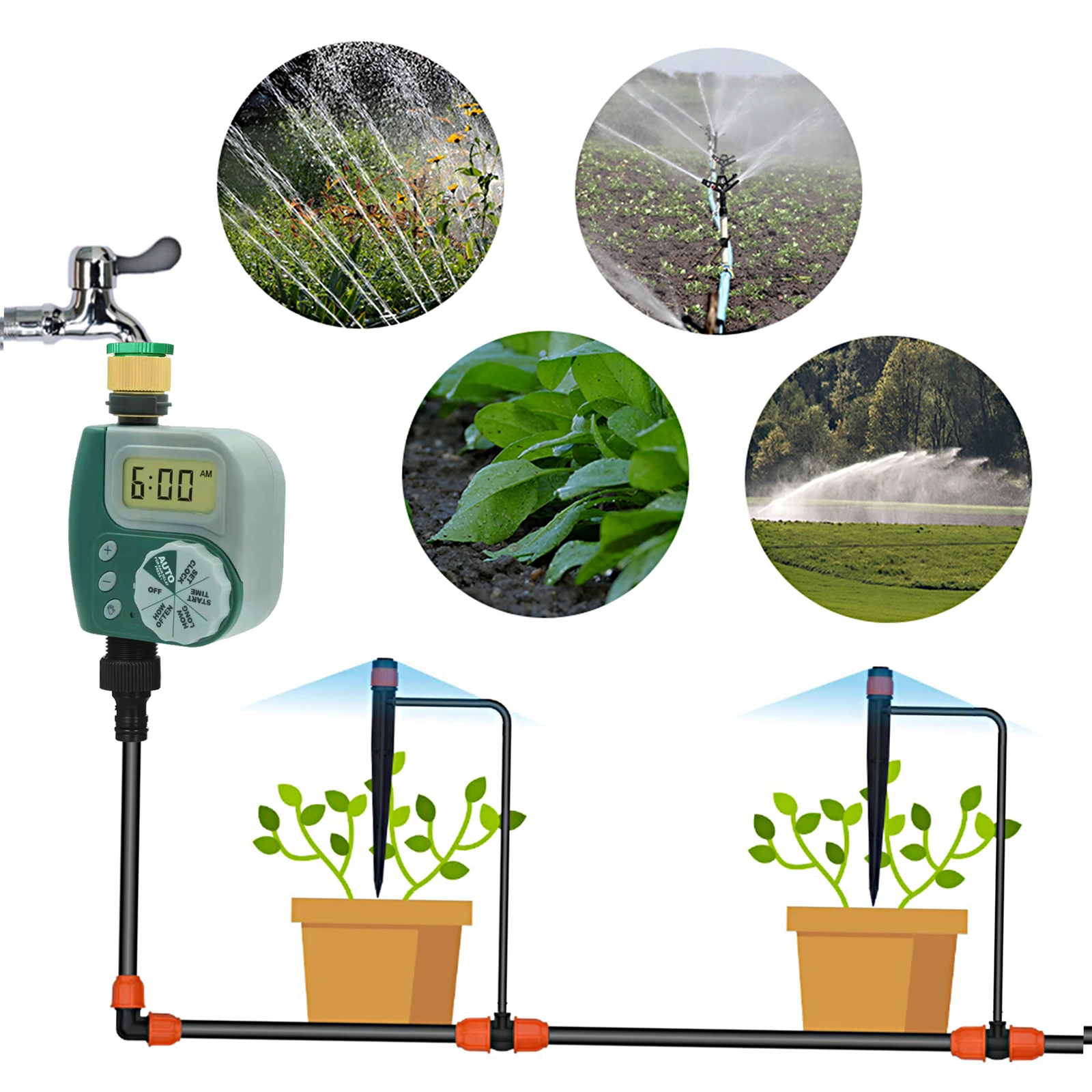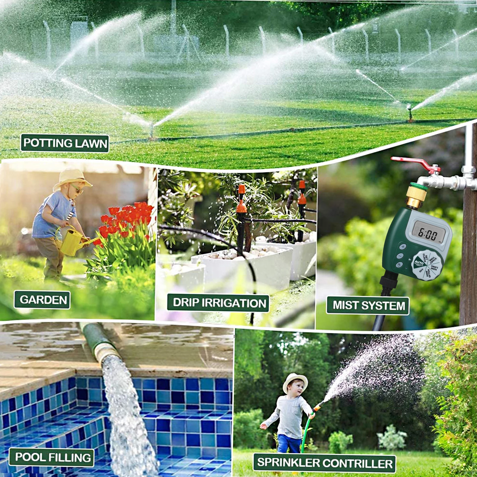 La minuterie d’arrosage numérique pour jardin est un contrôleur d’irrigation automatique programmable avec un connecteur en cuivre étanche. Elle est conçue pour améliorer l’étanchéité du robinet et éviter les fuites d’eau. Fabriquée avec des matériaux de haute qualité, cette minuterie est résistante à l’eau. Elle met votre tuyau d’eau en un système d’arrosage programmé en quelques minutes seulement grâce à son grand affichage numérique et ses commandes simples. Vous pouvez facilement régler la fréquence et la durée de l’arrosage. Alimentée par 2 piles AA, elle est à faible consommation d’énergie et offre une longue durée de vie. Cette minuterie d’eau automatique rend votre système d’irrigation de jardin intelligent et pratique.