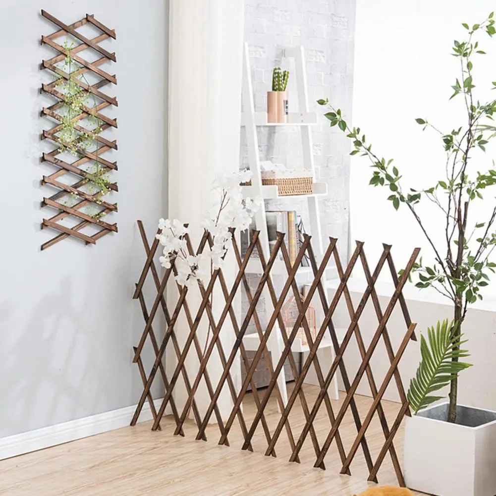 Le treillis en bois extensible est idéal pour soutenir les plantes grimpantes et peut également être utilisé comme clôture de jardin ou cloison. Il peut servir de support suspendu pour les plantes sur les balcons, dans les salles à manger et les salons, ainsi que de jardinière murale.