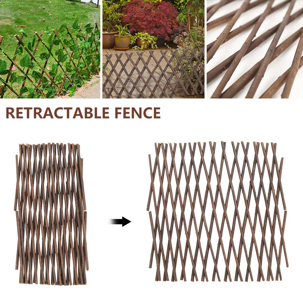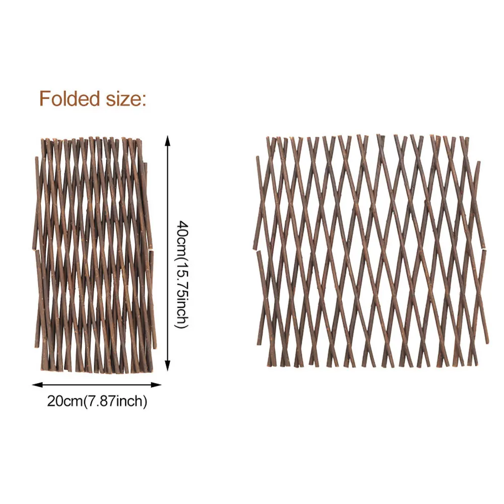 La clôture extensible en bois pour plantes grimpantes est un support parfait pour les plantes grimpantes, qu’elles soient courtes ou hautes. Elle peut également être utilisée comme clôture, diviseur et porte d’expansion. Cette clôture de jardin est idéale pour élever des semis et planter des plantes. En plus de ses fonctionnalités pratiques, elle permet d’embellir votre cour tout en créant une intimité instantanée en quelques minutes. Fabriquée en saule, cette clôture est solide, durable et la taille peut être ajustée à volonté. Elle convient également pour la décoration de vacances dans les centres commerciaux, les bars, les parcs et les jardins. Vous pouvez l’utiliser avec des pots de fleurs muraux ou des plantes artificielles, ce qui en fera une vue magnifique!