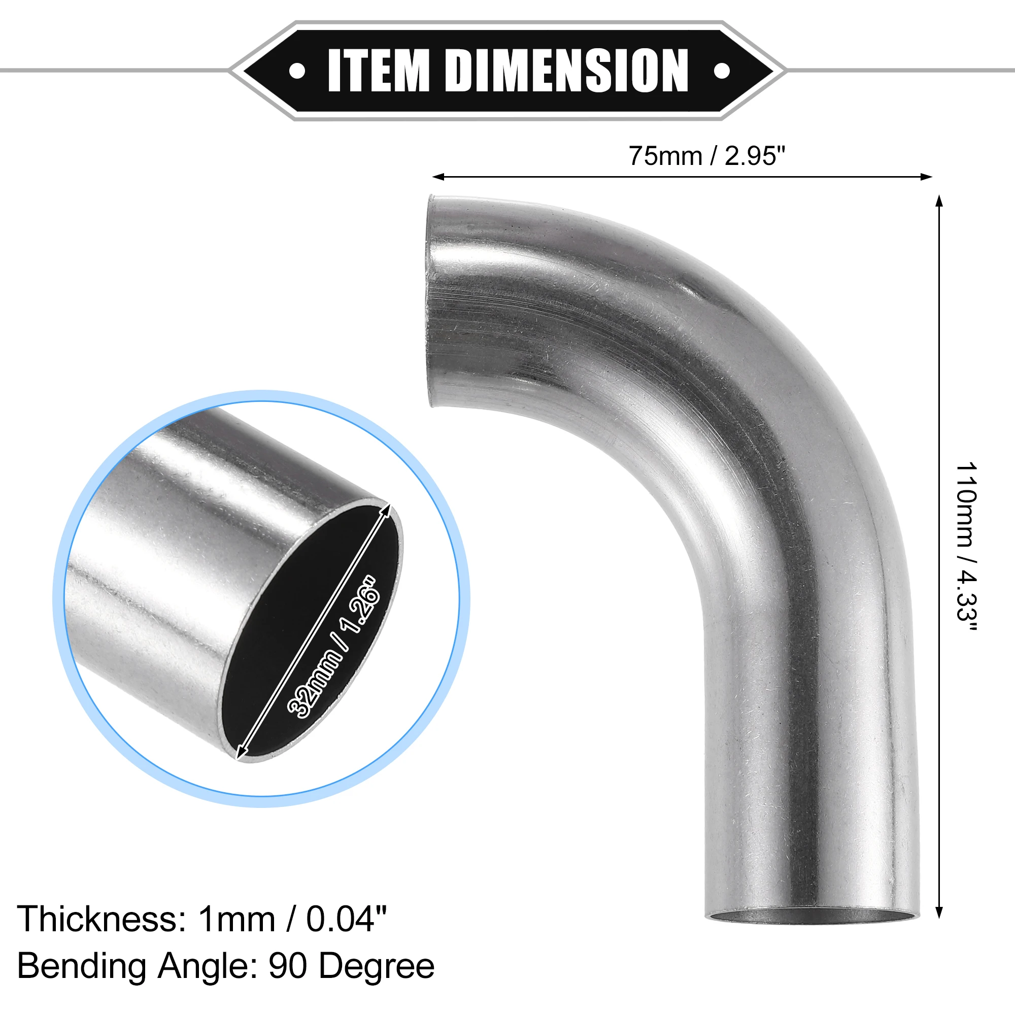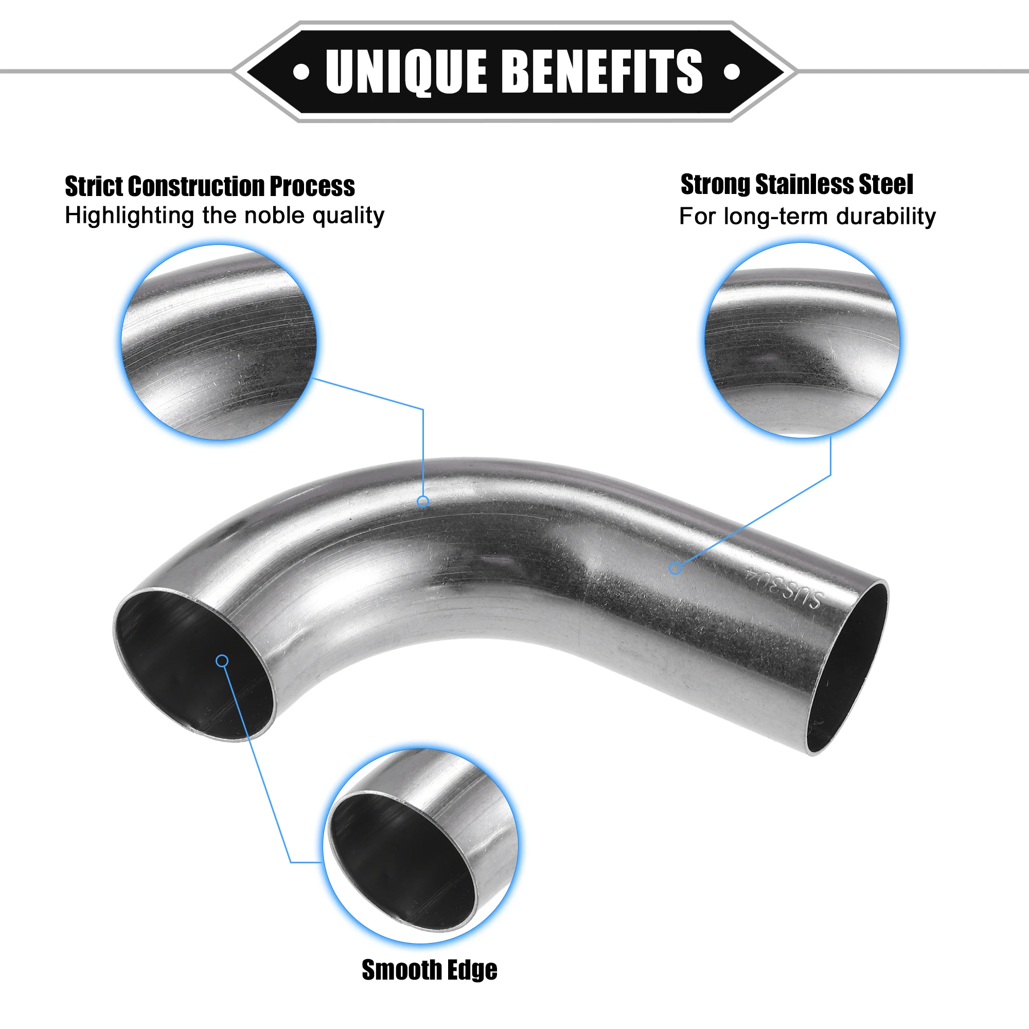 Test et avis sur le produit « UXCELL-Tube d’Admission d’Air Coudé à 90 °, Accessoire en Acier Inoxydable 304 pour Voiture, 19mm, 25mm, 32mm, 38mm, 63mm, 2 Pièces »