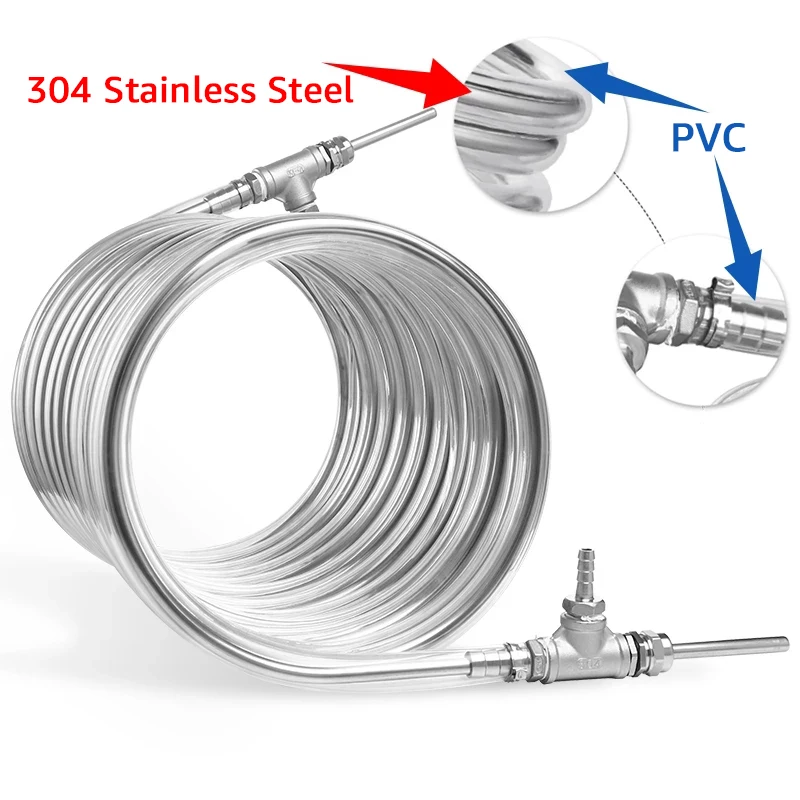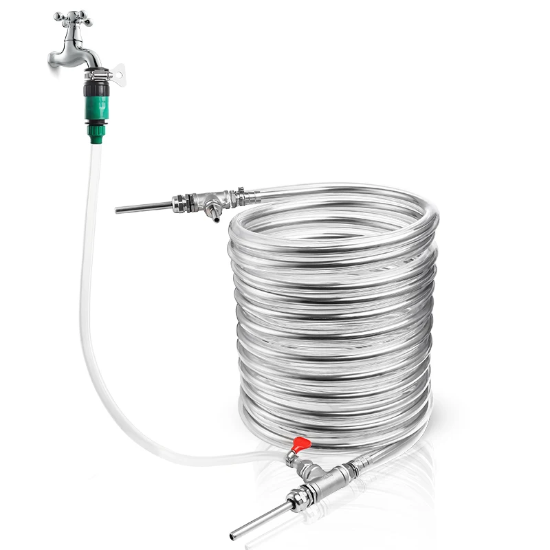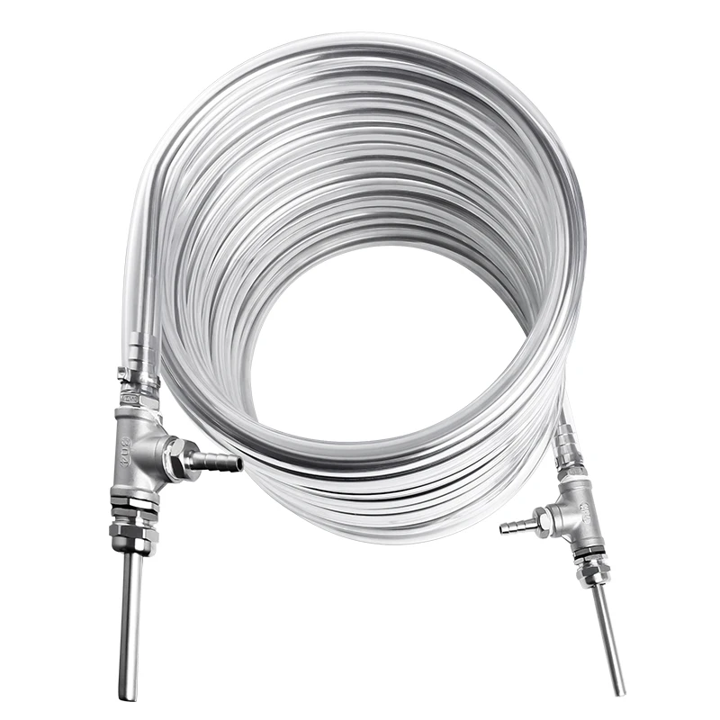 Le tube de refroidissement en acier inoxydable est capable de refroidir rapidement le moût à environ 24 degrés après que le moût chaud ait traversé le tube d’enroulement. Cela permet de réduire efficacement la croissance d’organismes contaminants dans le moût, assurant ainsi la qualité de la bière Homebrew.