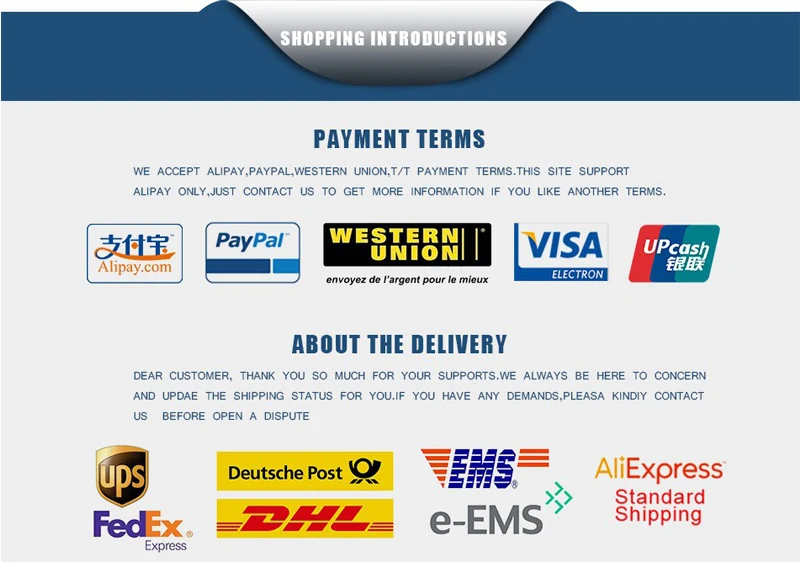 - Manière d’expédition rapide : FedEx, DHL, TNT, EMS, e-EMS