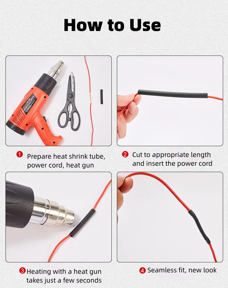 Astuce d’utilisationIl est recommandé d’utiliser un briquet ou un pistolet à air chaud pour chauffer et rétrécir.