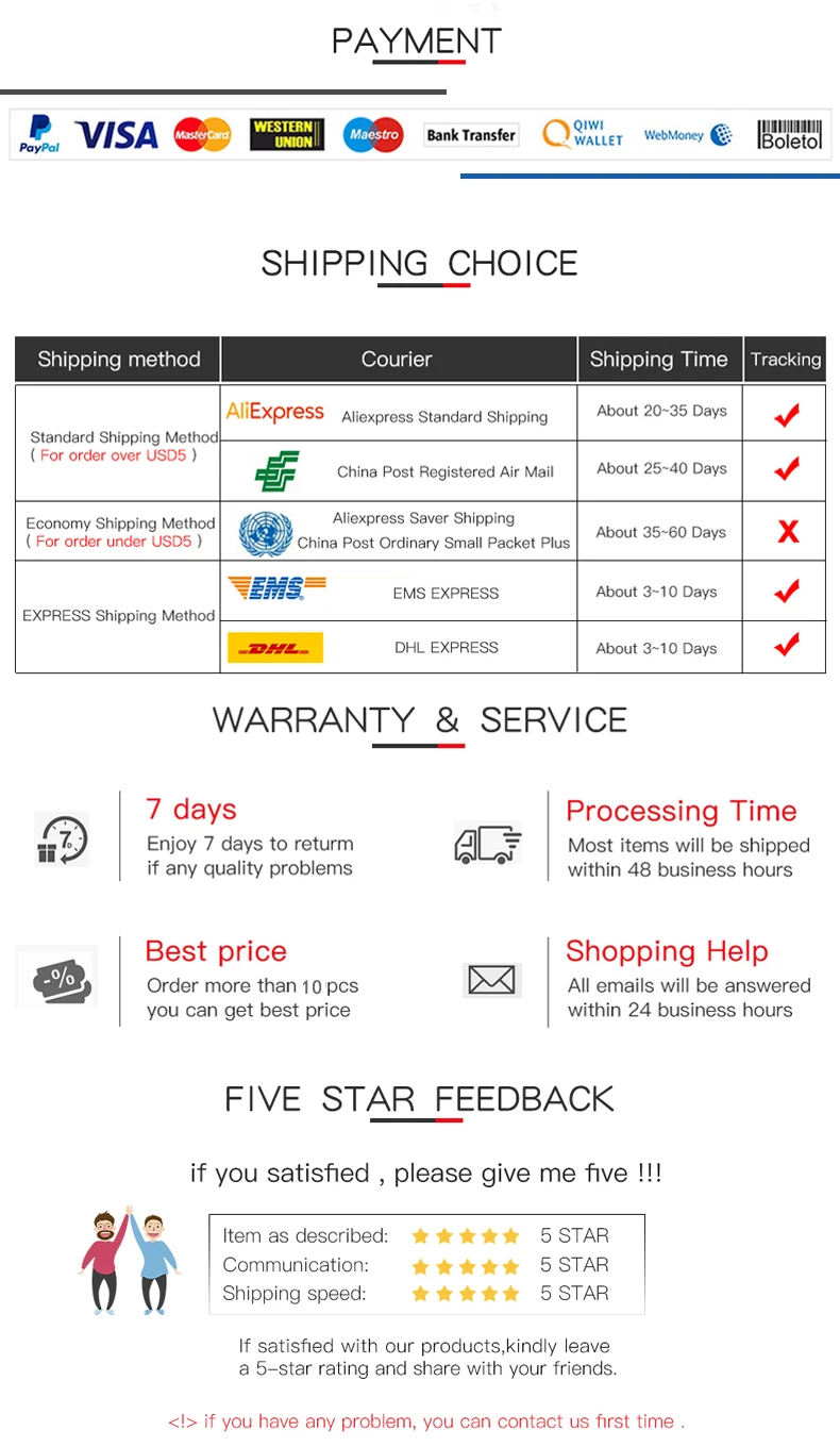 En cas de dommage pendant le transport, veuillez nous contacter immédiatement pour résoudre le problème.