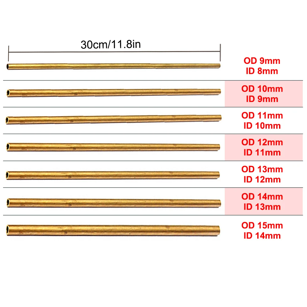 Les diamètres disponibles pour les tubes en laiton sont les suivants : 2mm, 3mm, 4mm, 5mm, 6mm, 7mm, 8mm, 9mm, 10mm, 12mm.